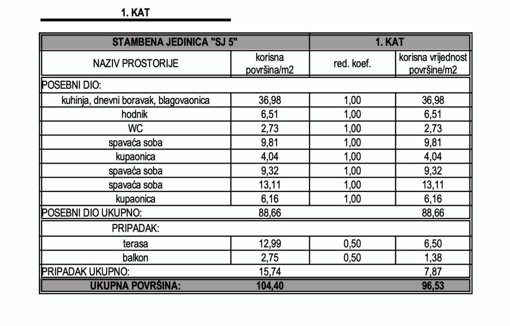 Apartment S-5 - 1st floor - living area 88.66 m2 (3 bedrooms + 2 bathrooms + WC) + terrace (13 m2 - SE) + balcony (3 m2 - SW) + garage parking space + storage in the basement, net calculation area 105.99 m2 = 476,955 EUR