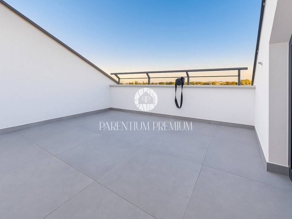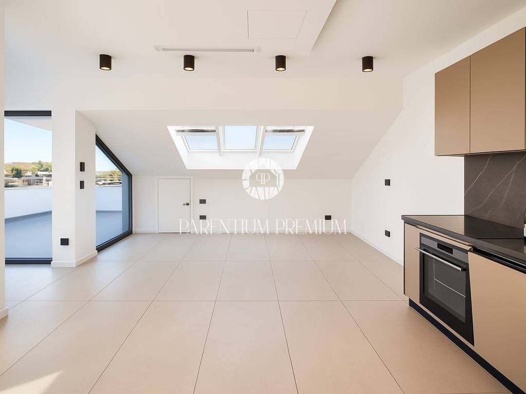 For sale: a modern penthouse apartment in the center of Poreč, with a total area of 86 m² (net 75 m²). The apartment is located on the fourth floor of a new building with an elevator, built in 2024. It stands out with high-quality construction, a spacious terrace, and luxury equipment.Property details:Total area: 86 m² + storage, net 75 m²2 bedroomsLiving room with kitchen and dining areaBathroom + separate WCStorage roomLarge terrace with stunning city and sea views4th floor – penthouse, building with elevatorEquipment & construction:Underfloor electric heating throughout the apartmentCeiling air-conditioning units for heating and coolingModern and high-quality construction (new build 2024)