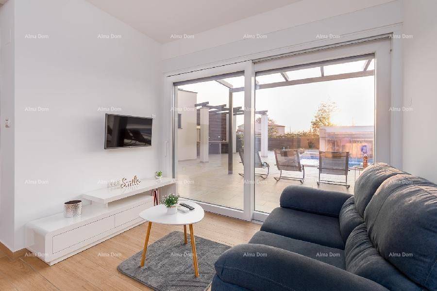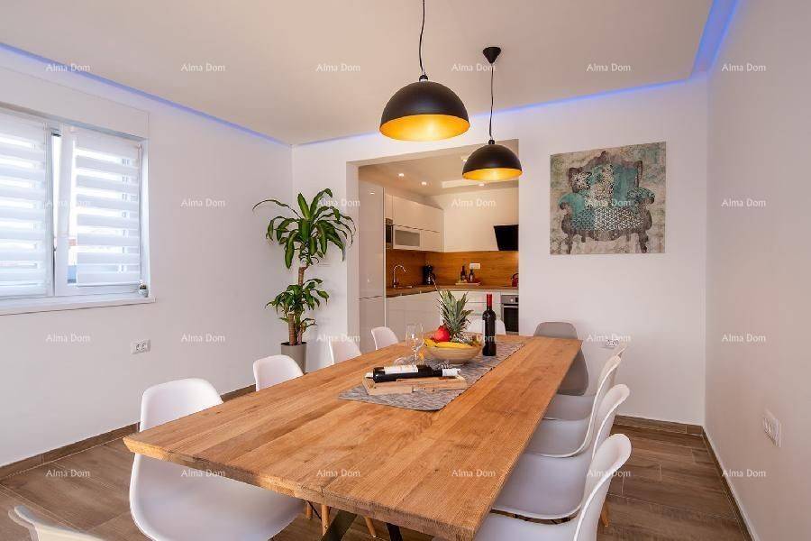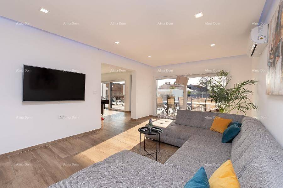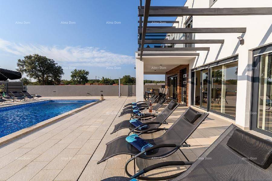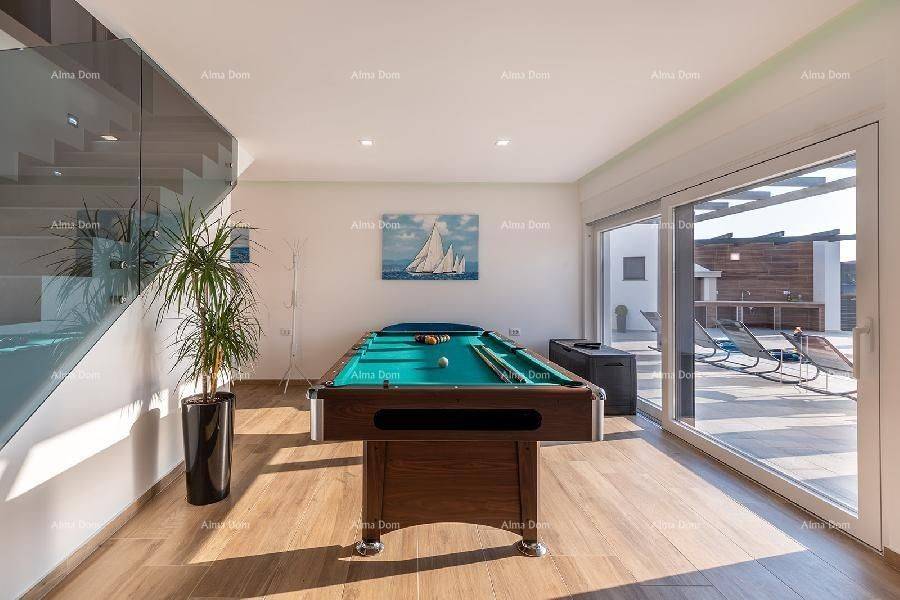 Loborika!The villa consists of the ground and the first floors.The ground floor has a kitchen with a dining room and living room, entrance hall with billiards, pantry (laundry), bedroom with bathroom + extra bathroom.Internal stairs lead to the first floor of the house where there are 4 bedrooms each with its bathroom (two of them have a terrace).+ Separately one smaller one-bedroom apartment with a terrace.Everything is completely furnished!Air-conditioned.Swimming pool with massage, waterfall, and spring!INFO: jelena@alma-nekretnine.com
