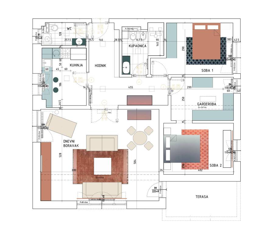 Srebrnjak trosoban stan u prizemlju zgrade građene 1997 god. Stan je neto korisne površine 103,34m2 te mu pripada garaža 15m2, ukupno obračunski 115m2. Kompletno adaptiran i namješten. Odličan raspored prostorija. Ulazni hodnik, toalet za goste, boravak s blagovaonicom, kuhinja, balkon, dvije spavaće sobe, garderoba, kupaonica (tuš). Grijanje centralno etažno plinsko, klimatiziran. Visina stropa 275 cm. Ostale informacije na upit.