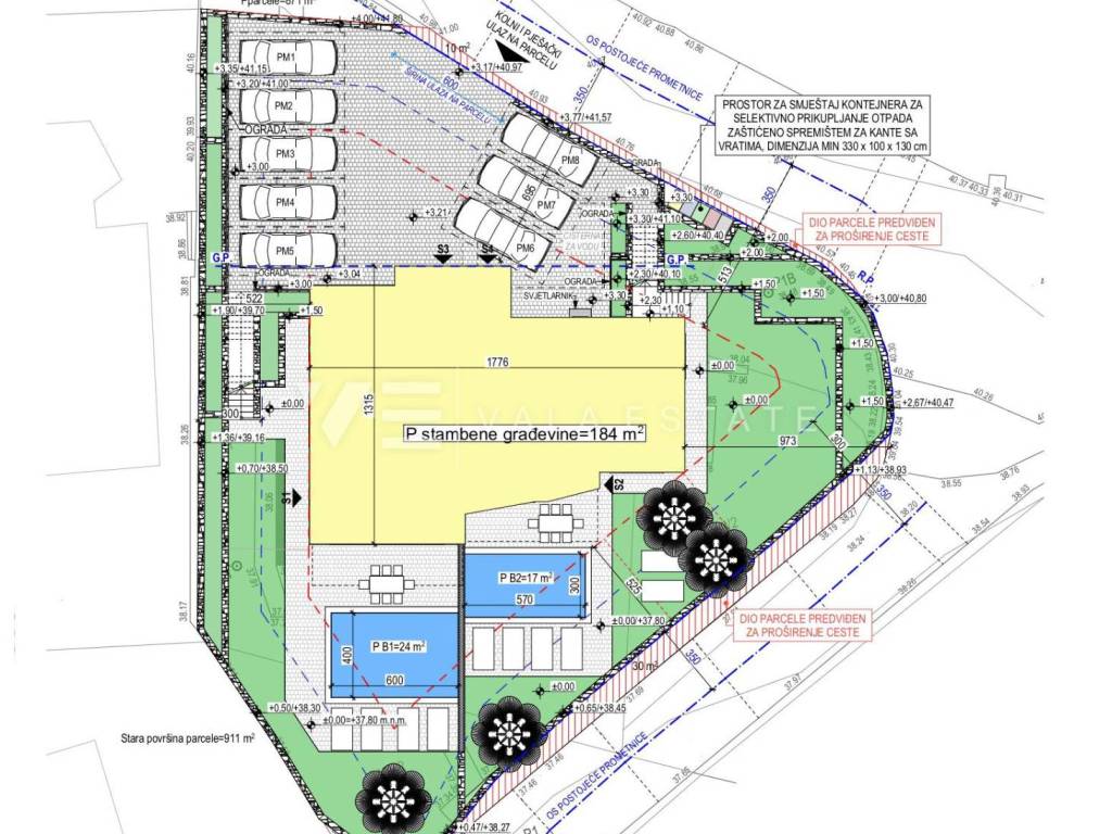 Real Estate Island of Krk, Malinska - for sale is a new modern apartment located on the ground floor of a new building with a garden and a swimming pool. The apartment has a living area of 83 m2 and consists of an entrance hall, two bedrooms, two bathrooms and a space connecting the kitchen, dining room and living room with access to a covered terrace and its own fenced and beautifully landscaped garden of 150 m2 with a partial view of the sea where there is a private pool and a sunbathing area. It comes with two parking spaces in the common courtyard of the building. High-quality construction and equipment, first-class ceramics and sanitary ware, aluminum joinery, underfloor heating, security doors, multi-split air conditioning and photovoltaic cells for the production of electricity for each apartment separately are the main features of this luxurious new building. The property is currently in the final phase of construction, and the planned completion for moving in is by spring 2026. The apartment is subject to VAT and the buyer does not pay real estate tax. Vala Estate Malinska agency will provide you with a safe and transparent transfer of ownership and all necessary documentation.