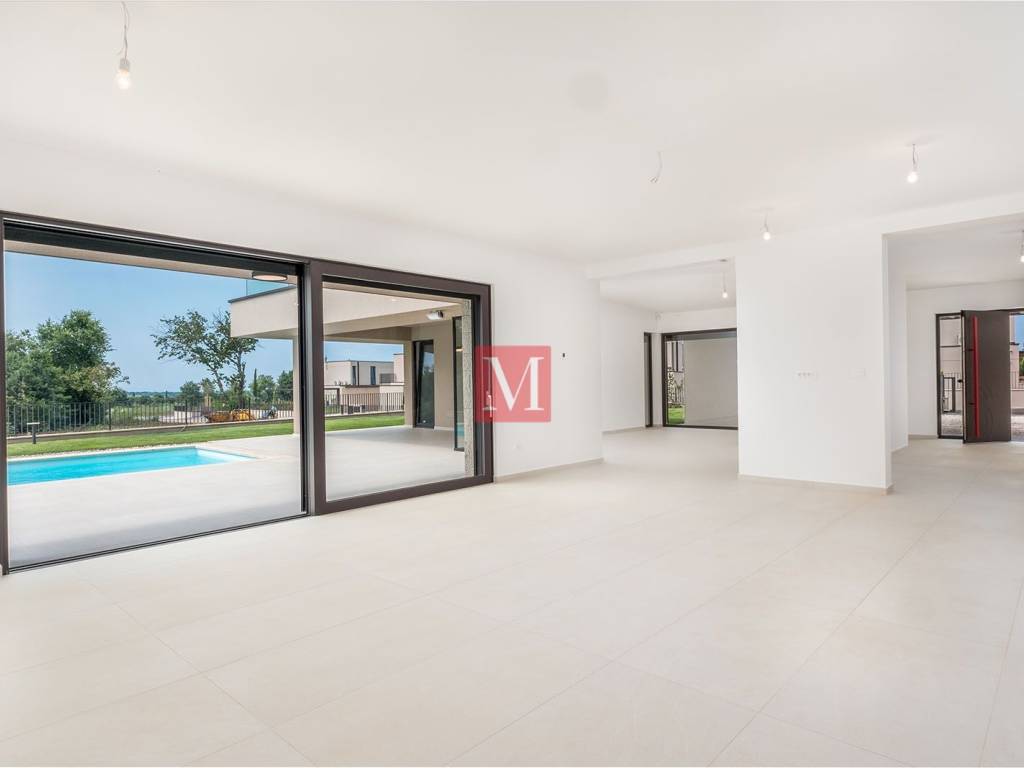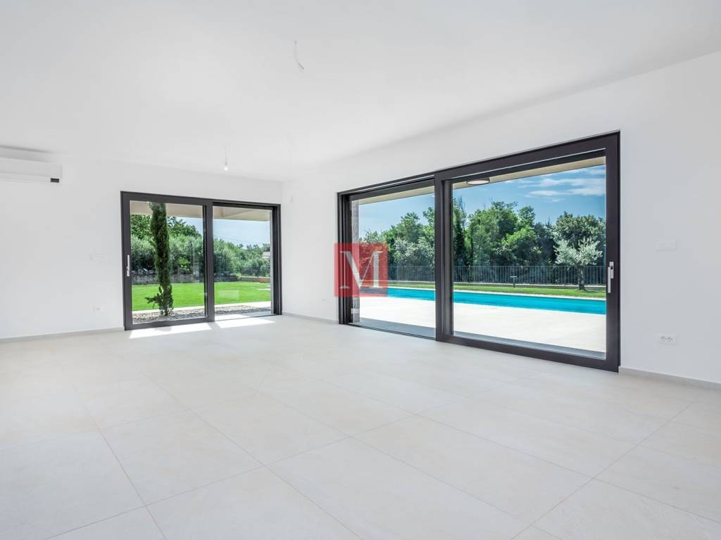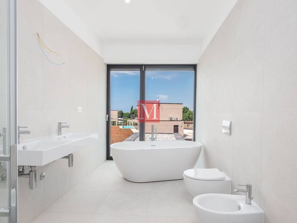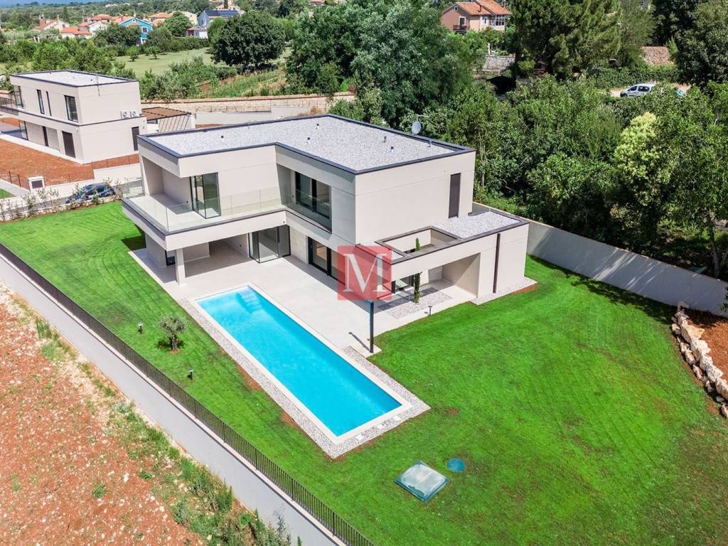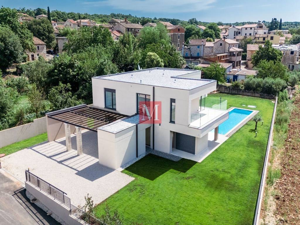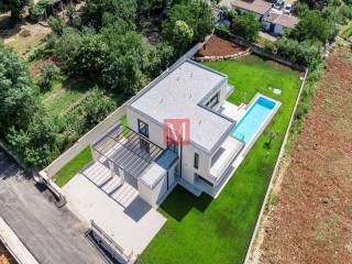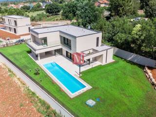 Luxurious, newly built two-story house (244 m2) with four bedrooms, a swimming pool (47 m2) and a landscaped garden on a plot of 1,323 m2 in the municipality of Labinci.