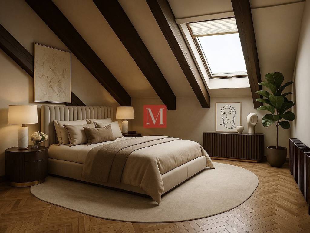 In future renovation, the apartment can be separated into two residential units. More precisely, it is possible to completely separate the gallery and the attic, the floor plans of which are in the attachment.