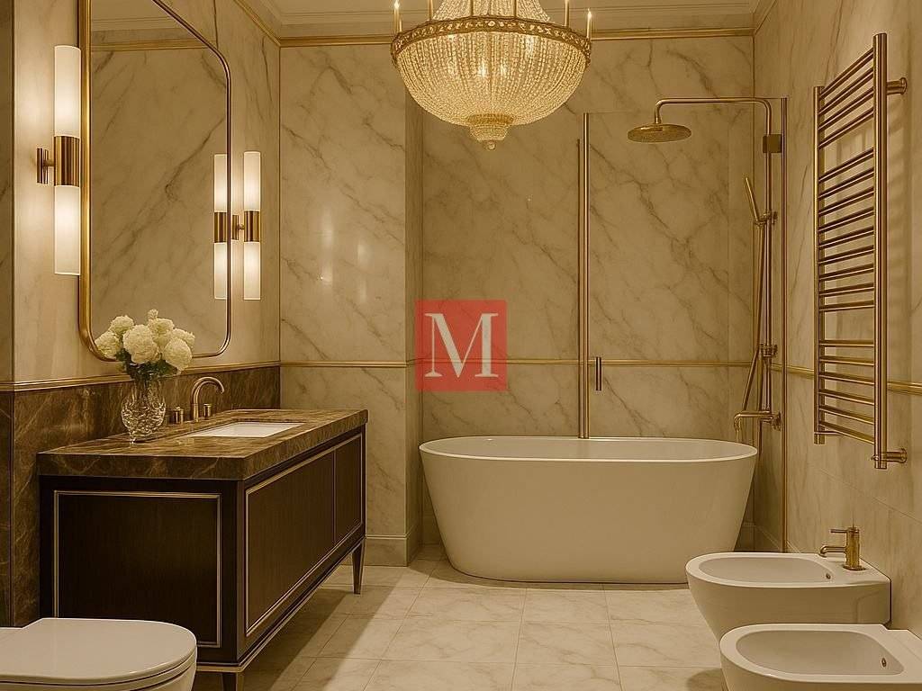 The apartment is sold unfurnished. On the first floor of the apartment there is a living room, a dining room, a kitchen, a small storage room and two bedrooms, a bathroom and a guest toilet. The gallery consists of a kitchen, open space dining room and living room, two bedrooms and two bathrooms.