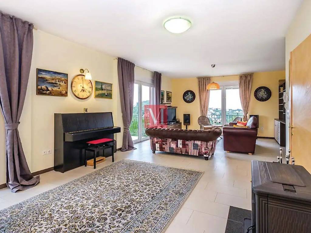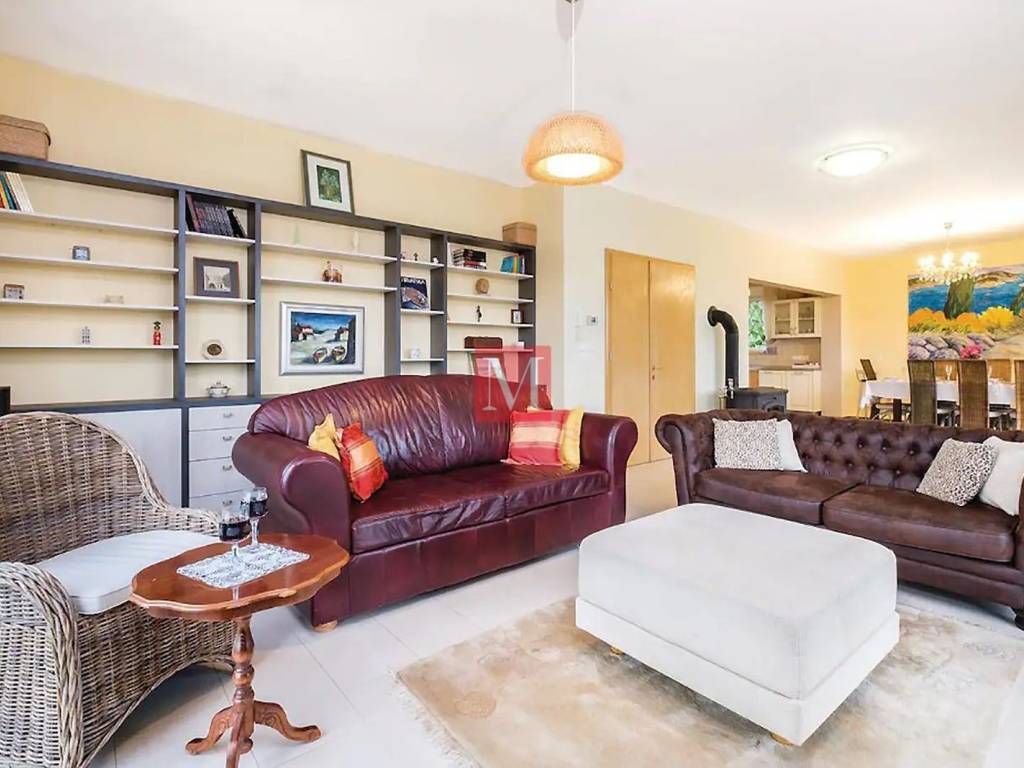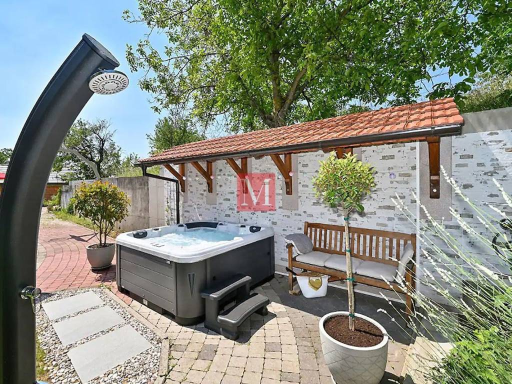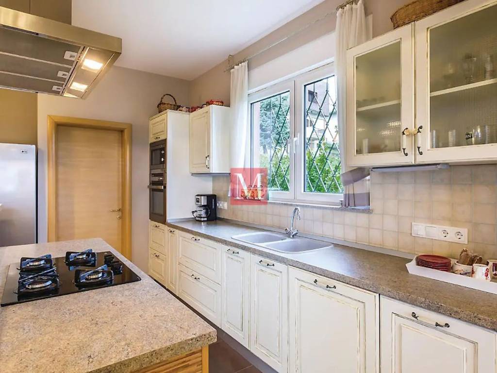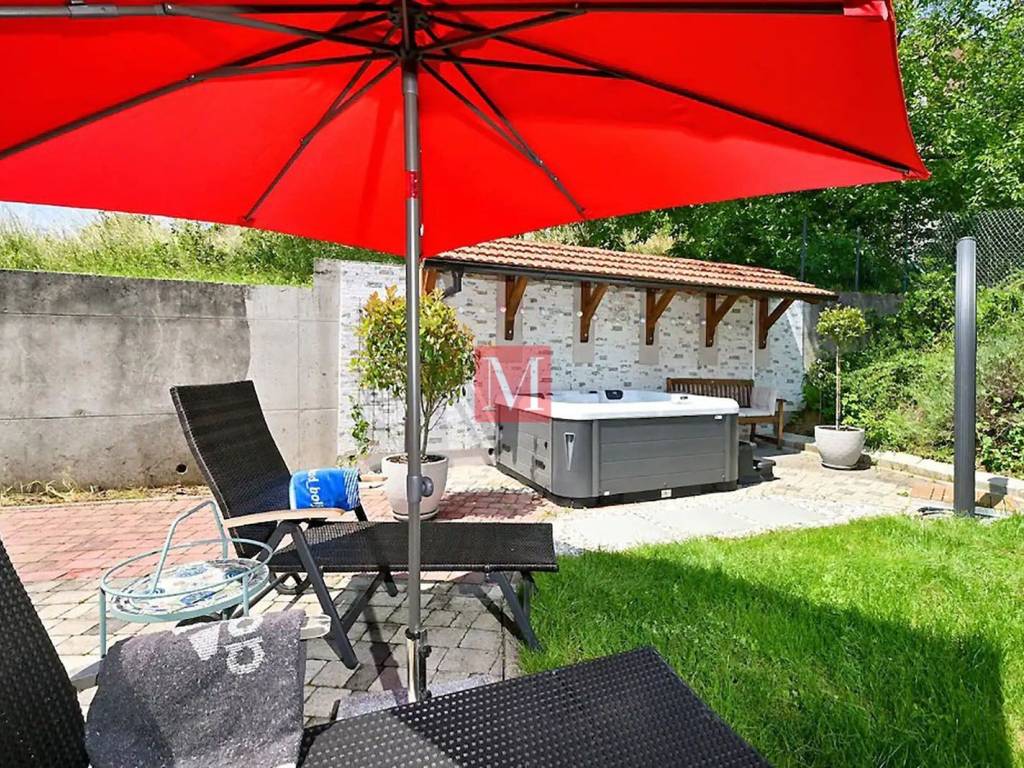 House condition : - almost new, - fully furnished, - equipped, piano Petrof, TV, dryer, washing machine, dishwasher, stove, oven, microwave and all necessary tools in the kitchen. - good quality electrical appliances - many closets and storage space. - double water filtraton system - intelligent building material, good isolaton, fresh in summer and hot in winter. - floor heatng, double glazing, electric shutters everywhere. heatng stove in the living room - very bright. - supermarket, bakery, pharmacy and post office 400 meters away. Electric gate. Large paved courtyard where you can easily park 7, 8 cars. Small orchard. Low bills. French and German International schools only 12 min. by car.