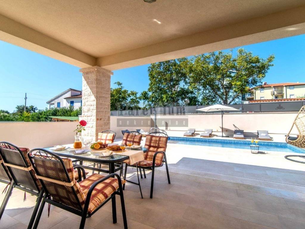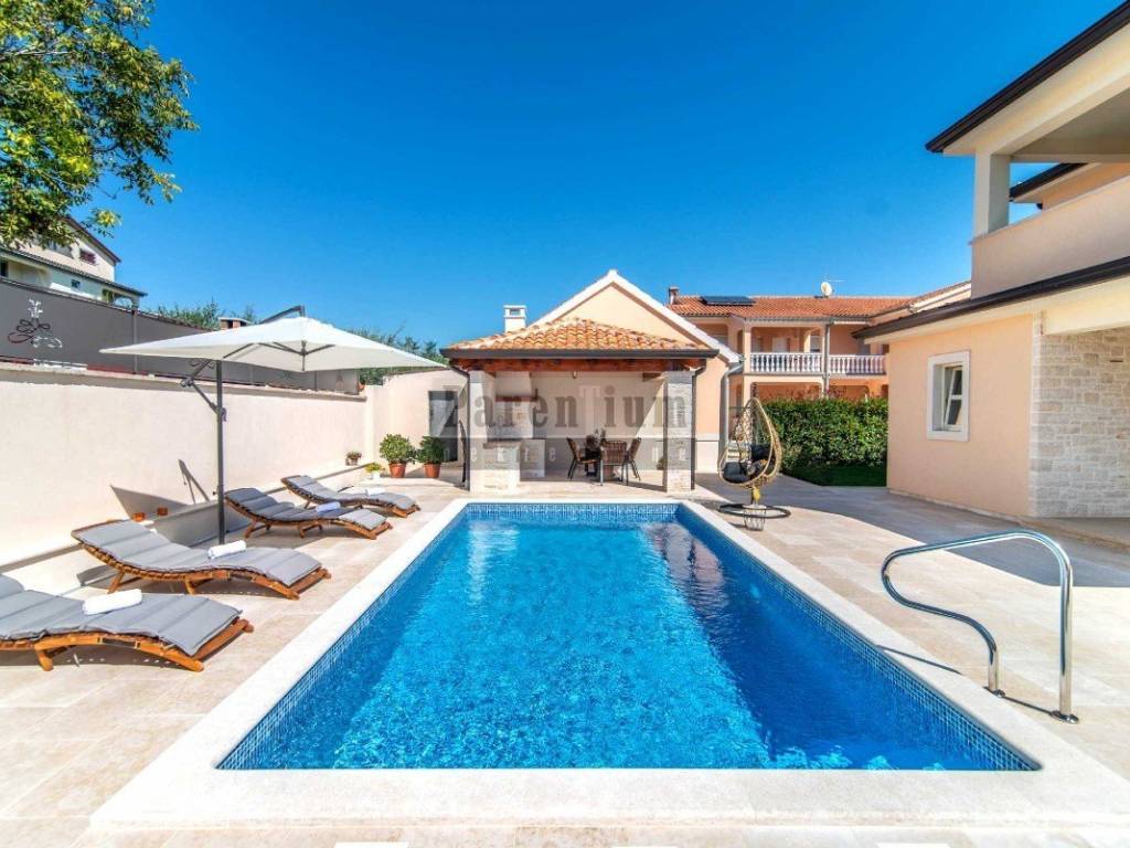 The pool is 24.5m2 in size, lined with foil, chlorine system. The sunbathing area around the pool is lined with Stone Kanfanar, 3 cm thick. Next to the pool there is a summer kitchen to enjoy the summer warm days.