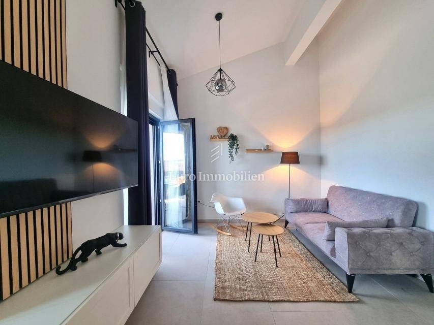 The apartment is being sold fully furnished and is move-in ready one month after reservation (currently rented). Heating is via air conditioning, with a chimney also available. PVC windows with shutters. The property includes two parking spaces.