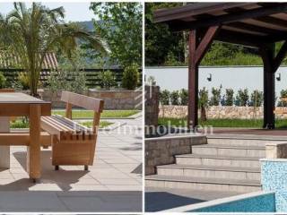Living room has access to a terrace with a kitchen and lounge area, only a few steps aways from a attractive swimming pool and a sundeck. Fully furnished. On a beautiful decorated garden 1313 sqm there are parking spaces. Beautiful and quiet location, 3 km from the sea.