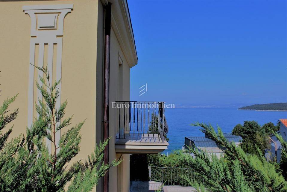 Njivice, Detached Villa of 402 m2 on a excellent location with sea view.The Villa consist of three floors. In the lower ground floor is a cellar and a boiler room. On the ground floor there are two apartments which consits of two bedrooms, living room with a kitchen and a dining area,two bathrooms and a terrace with sea view. The first floor consists of three bedrooms, living room with a kitchen a dining area, bathrooms and a terrace with a beautiful view of the sea.Villa has a land plot with parking spaces. Completely furnished, air conditioned, central heating.