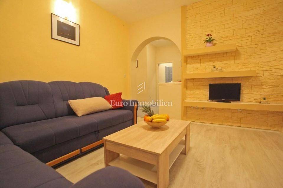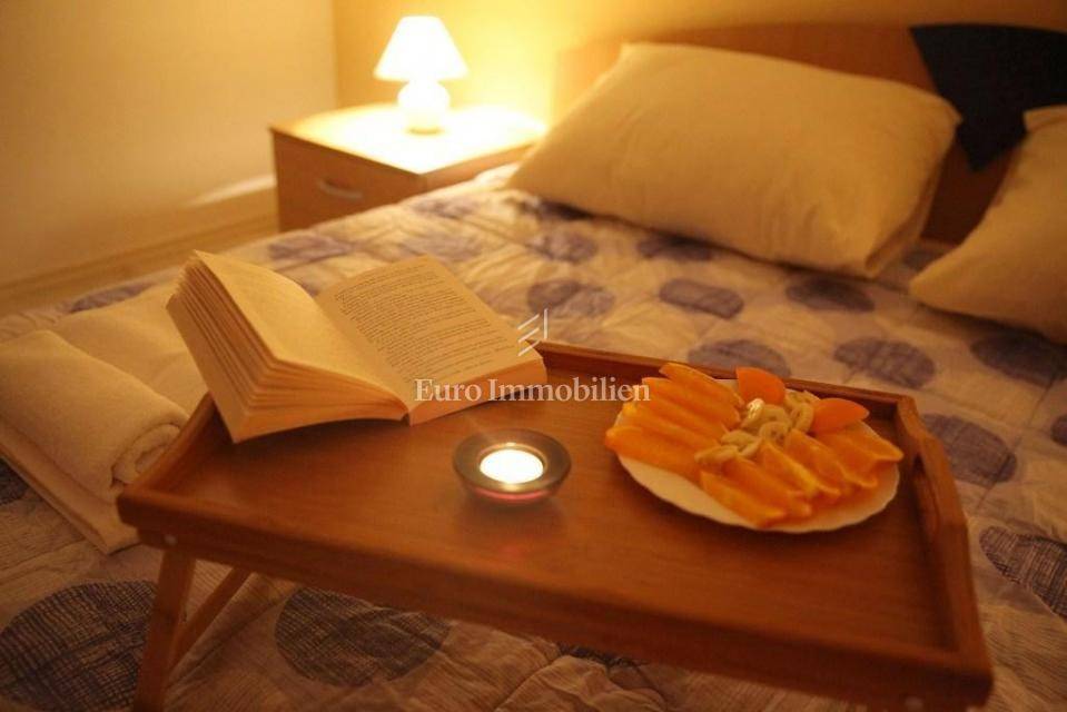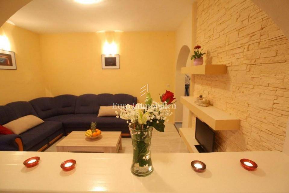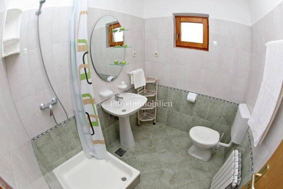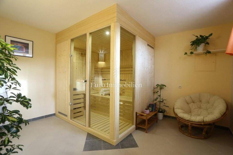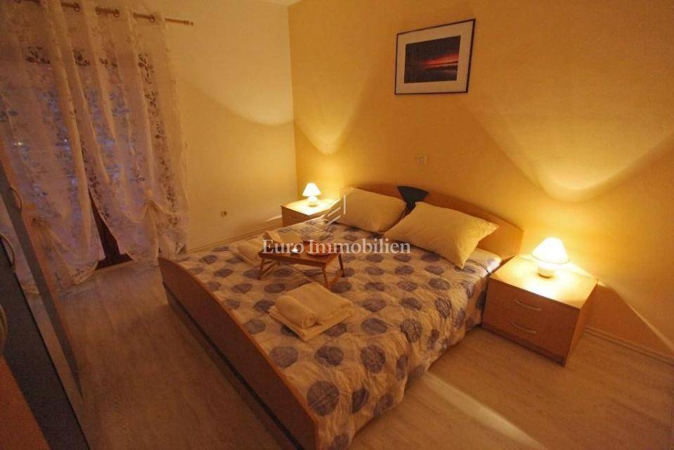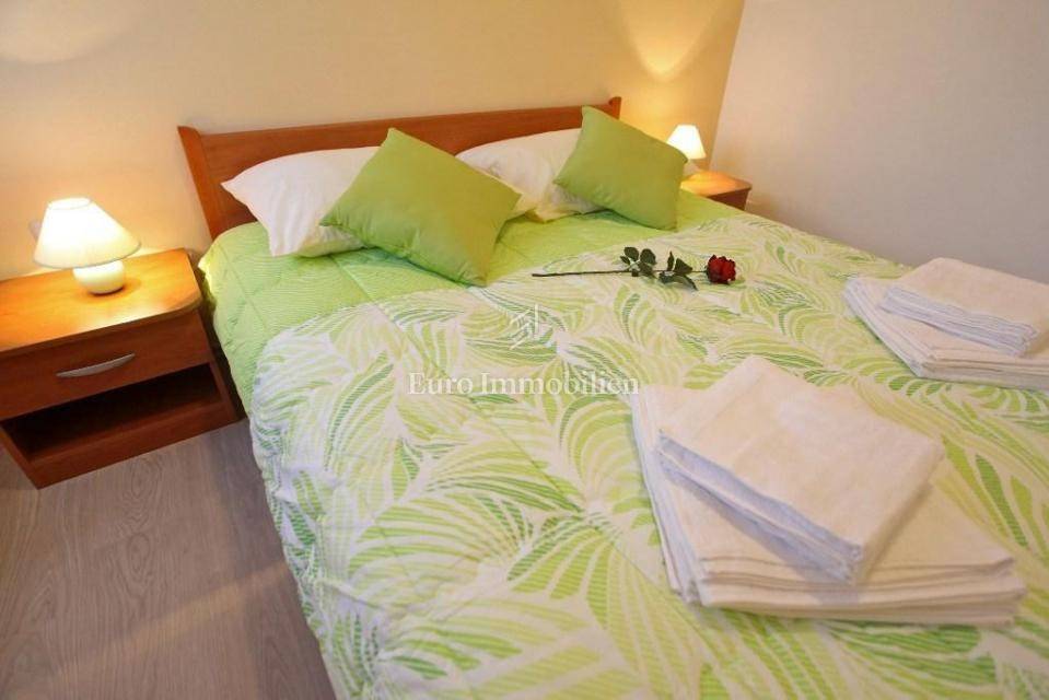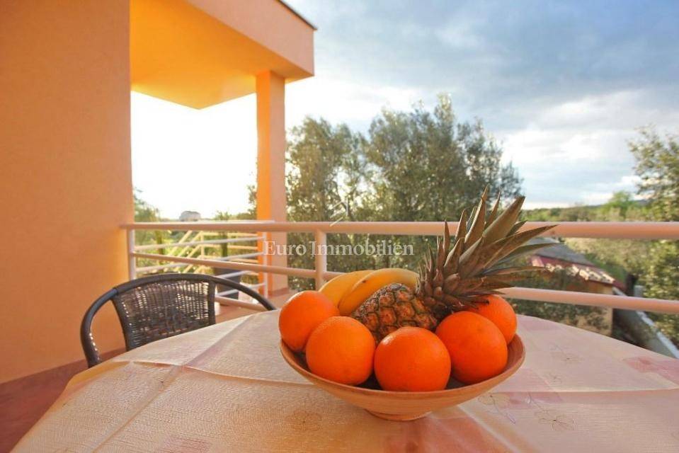 In a quiet location in Sukošan, an apartment house is for sale, built on land of 1952 sqn. The house has a residential area of 398 sqm and consists of basement, ground floor and first floor. In the basement there is an apartment with one bedroom and a sauna.