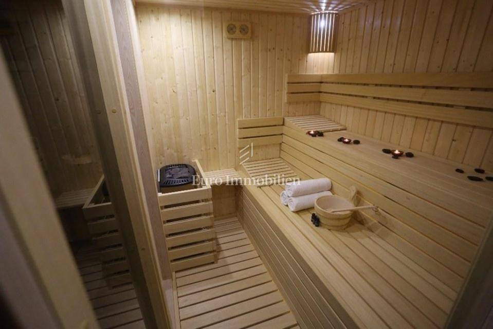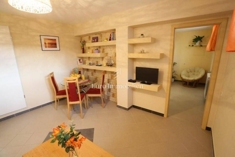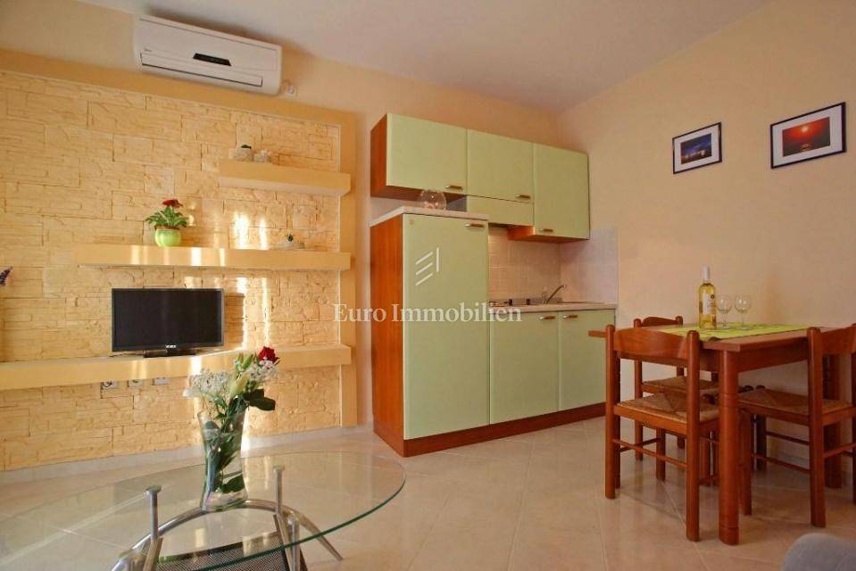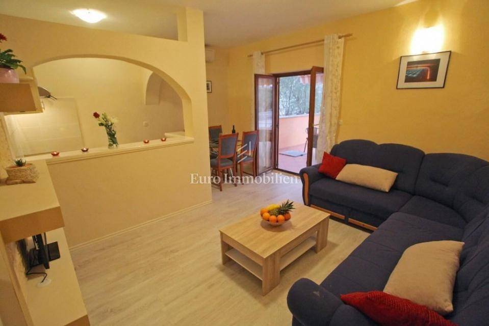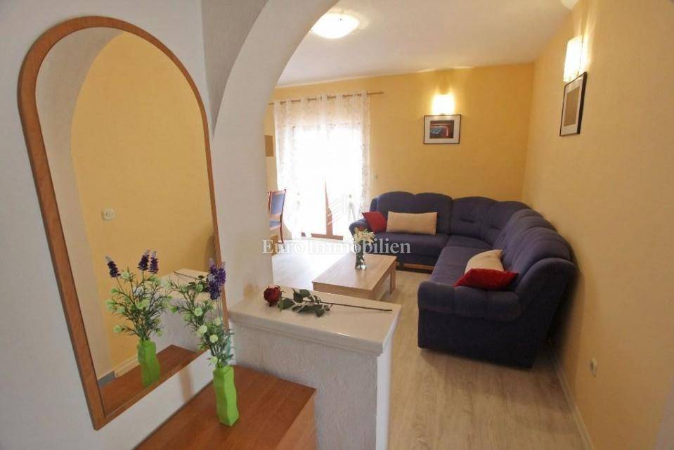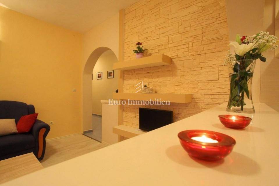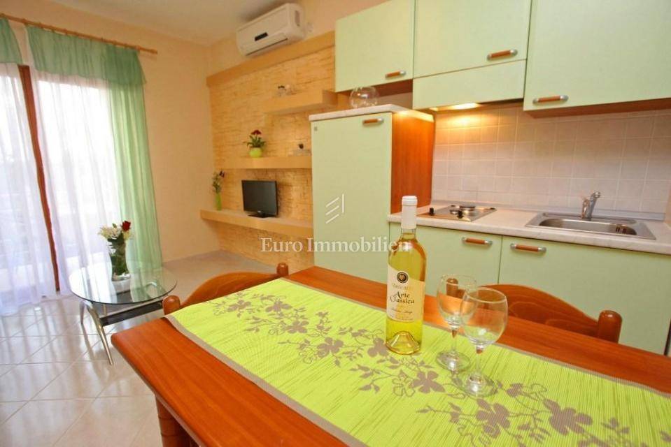 In a quiet location in Sukošan, an apartment house is for sale, built on land of 1952 sqn. The house has a residential area of 398 sqm and consists of basement, ground floor and first floor. In the basement there is an apartment with one bedroom and a sauna.