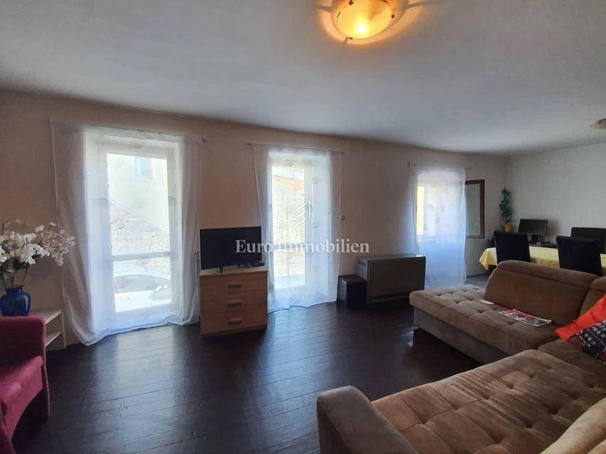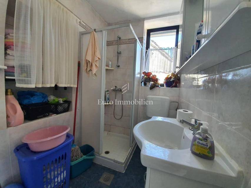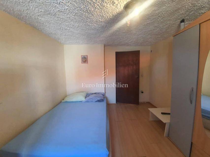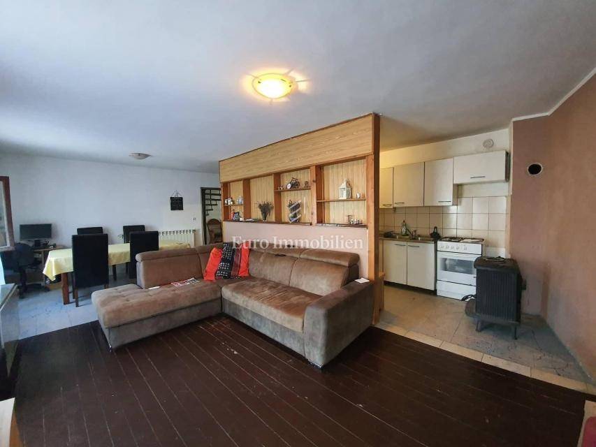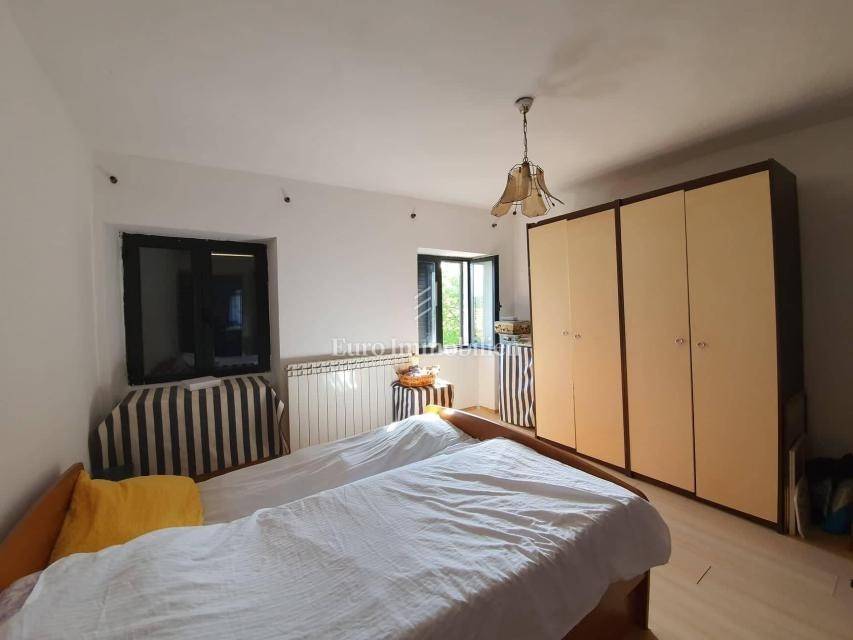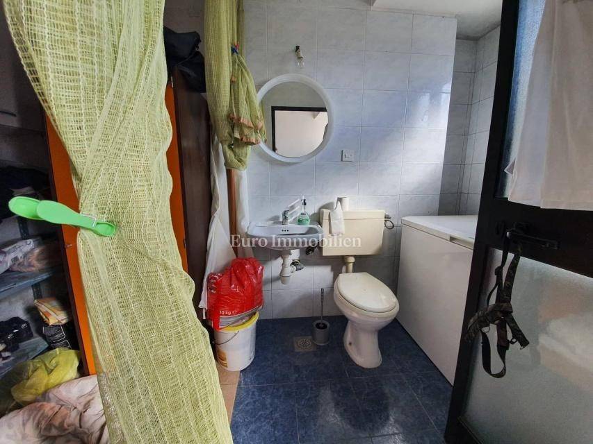 The house consists of a basement, ground floor, first floor, and high attic and has a tavern. On the ground floor, there is a hallway, living room, kitchen, bedroom, bathroom, toilet, and terrace. On the first floor, there are three bedrooms and a part to be finished of approx. 50 m2 in the high attic. The house is habitable. Heating is central with fuel oil and wood. From the front of the house, there is a view of the sea.