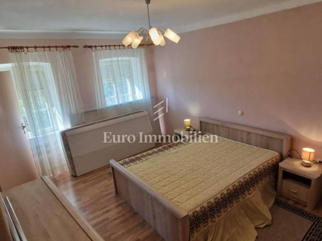 Nestled in the charming village of Grižane, just a short drive from Crikvenica, this inviting home offers privacy and tranquility. Spread across two floors, it features a hallway, cozy living room, kitchen with dining area, and three bedrooms, two of which are on the upper floor. The north side boasts a spacious courtyard, while the south side offers a garage, additional parking, and a garden. The home is move-in ready but could use a refresh to unlock its full potential. From this prime spot, enjoy a stunning sea view over the Crikvenica hinterland, creating a perfect oasis close to the coast.