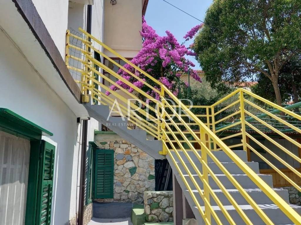 on the ground floor there is a three bedroom apartment, in front of which is a huge terrace, barbecue, garage and garden house. Upstairs are three bedrooms with bathrooms and private