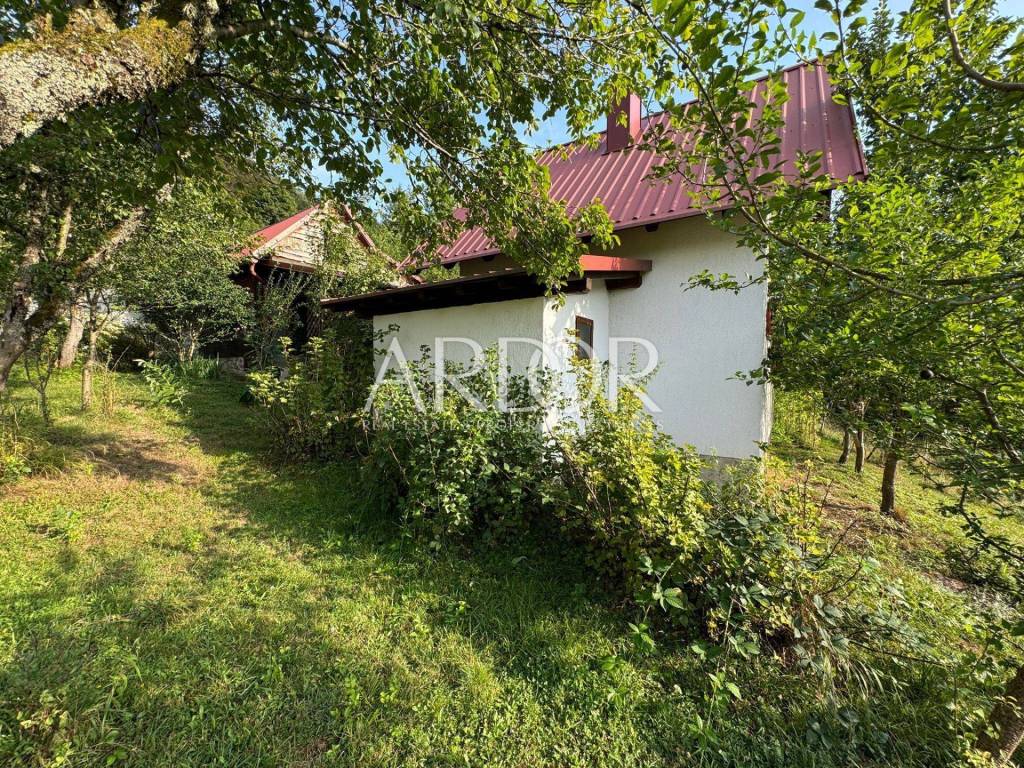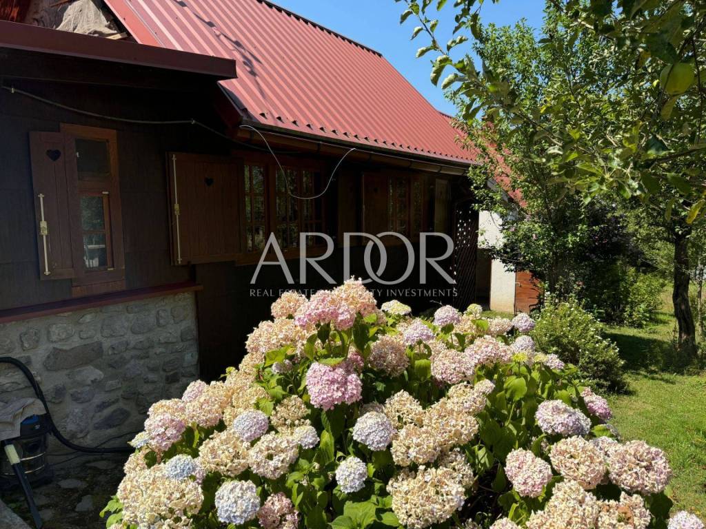 Near Brod na Kupi, within walking distance to the source of the Kupa River, in the heart of Risnjak National Park, two houses are for sale. One is a fully furnished and equipped wooden house, while the other is a brick house whose interior needs to be finished and furnished.