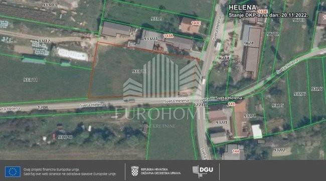 Prodaje se građevinsko zemljište na atraktivnoj lokaciji u Sv. Heleni udaljeno kilometar od čvorišta/autoceste,