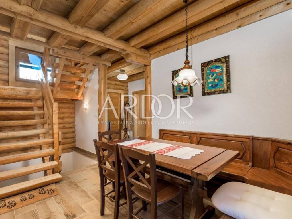 HOUSE of 250 m2, and 600 m2 garden, in the heart of Gorski kotar, next to Delnice, where you feel like you are in the forest! This house is made of wooden forms, carefully assembled by the skillful hand of an expert! The house was built in 2018, and had a very successful career in tourist rental. This wooden mountain oasis, with a comfortable, warm and intimate interior, is located in a quiet little village with a wonderful view of the mountains of Gorski Kotar and the Kupska valley. A heated Jacuzzi, a covered terrace with a view of the beautiful mountains and the greenery of Gorski Kotar will simply elicit a sigh of relief from every traveler. The ground floor has a gym, social rooms, a tavern, a playroom for children, and provides all the elements for a hedonistic holiday in nature. This house, with its 4 bedrooms and three bathrooms, provides excellent comfortable accommodation for 8 to 12 people, and is an ideal property for family get-togethers, larger groups and vacations in untouched nature and silence.