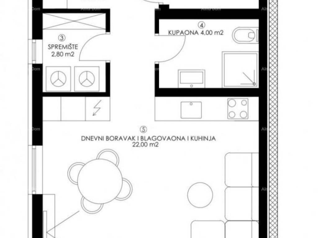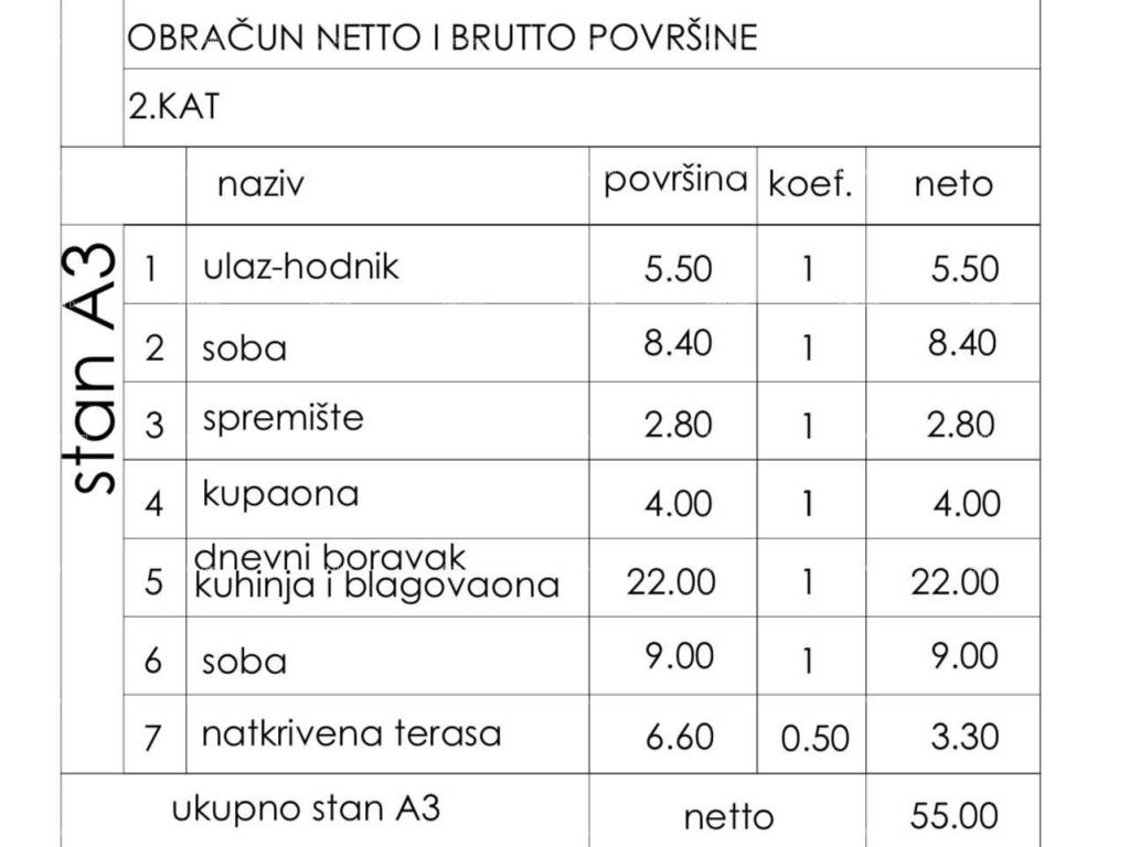 New Project – Pula!A new residential project in a quiet part of Pula. The building has three floors and a total of three apartments – one on each floor.Apartment A3 is located on the second floor of the building and consists of a hallway, bathroom, 2 bedrooms, a storage room, and a kitchen with a dining area and living room that has access to a terrace.Equipment and standards:- Air conditioning units in the living room and all bedrooms- Electric underfloor heating in the living room, dining area, kitchen, hallway, and bathroom- Bedrooms finished with laminate, the rest of the apartment with ceramic tiles- Anthracite-colored PVC joinery with built-in insect screensThe planned completion of the works is scheduled for the end of 2026.This project offers the ideal combination of modern living, energy efficiency, and a peaceful location, just a few minutes" drive from the center of Pula and the sea.For any additional information and to view the apartment, please contact:Azra +385 91 611 5706 +385 98 420 885 azra@almadominvest.com