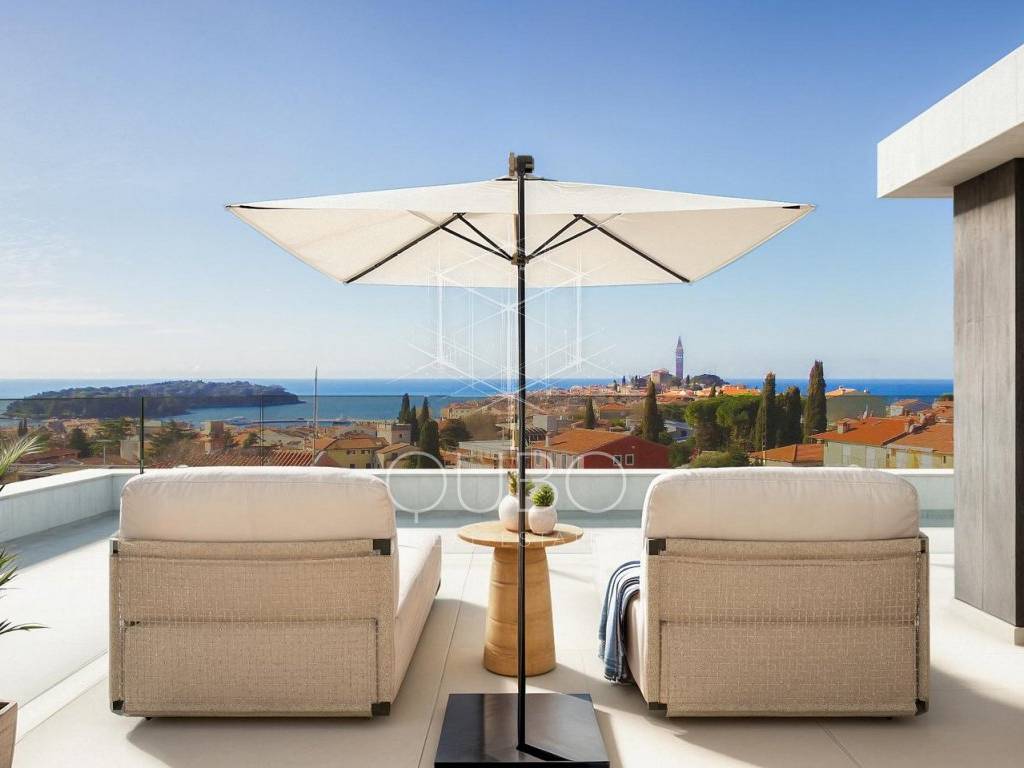 Perched above the most desirable quarter of Rovinj, this extraordinary two-level penthouse blends refined contemporary architecture with the serenity of Mediterranean living. Floor-to-ceiling glass opens the space toward a breathtaking horizon, framing the Old Town, the sea and the silhouettes of cypress trees.