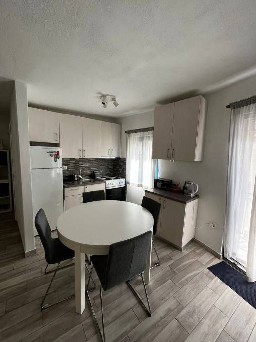 The house has two separate entrances on two floors, each measuring 40m2. Each floor represents a separate residential unit and is suitable for accommodating up to 8 people (4 people per floor). Each floor has a separate bathroom with sanitary facilities, equipped kitchen, electric boiler, and air conditioning.