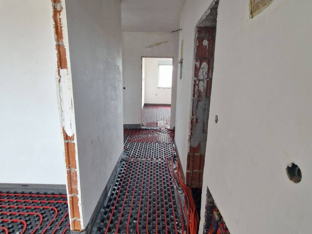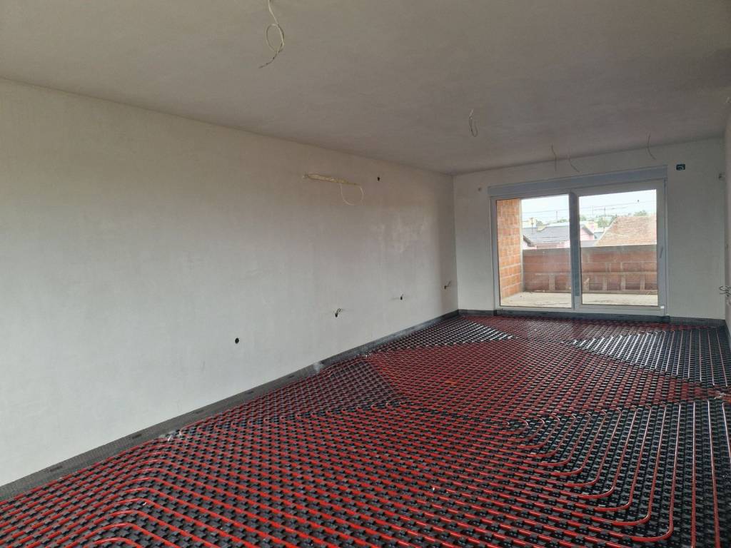 It has PVC windows, 15 cm polystyrene insulation, gas underfloor heating.