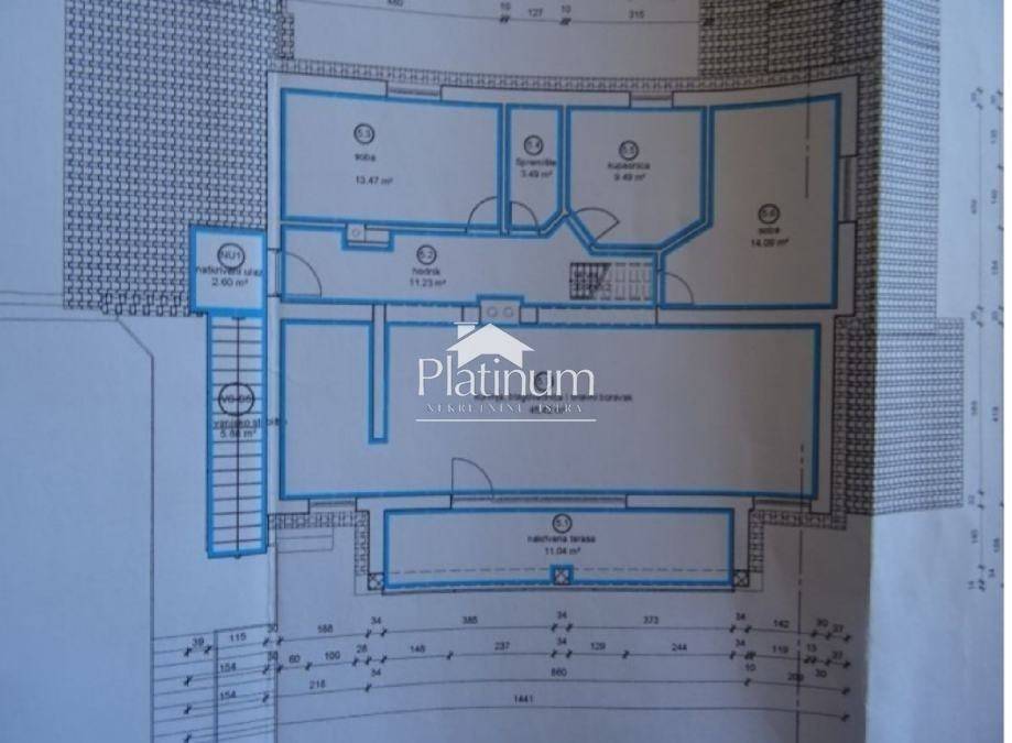Two-story apartment for sale in an excellent position with a view of the sea and Brione. 400 m from the sea and the beach. The apartment is located on the second floor and is being sold in the renovation phase, while most of the apartment is furnished in the attic. It consists of four bedrooms, two bathrooms, kitchen, living room, hallway, terrace, own staircase with covered entrance, two storage rooms and a parking space, a total of 264 m2. Due to its location, it is ideal for tourist purposes. Info on 00385 91 924 9486