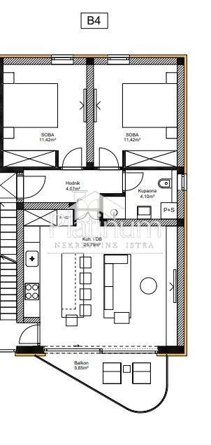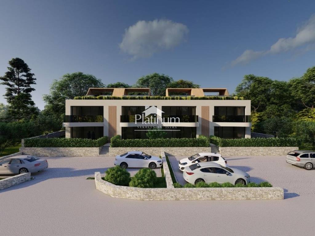 Tar, two-room apartment in a new building of 78 m2, only 2 km from the sea, with a roof terrace. The apartments will be built with the highest quality materials, each apartment will have underfloor heating and air conditioning; fire and burglary doors, dark glass walls on the terraces, PVC joinery with electric blinds. Each apartment has 2 parking spaces, and the apartments on the ground floor have a garden, and the apartments on the first floor have a roof terrace with a beautiful view of the sea and Poreč. For more info +385 959003151 Platinum Nekretnine Istra