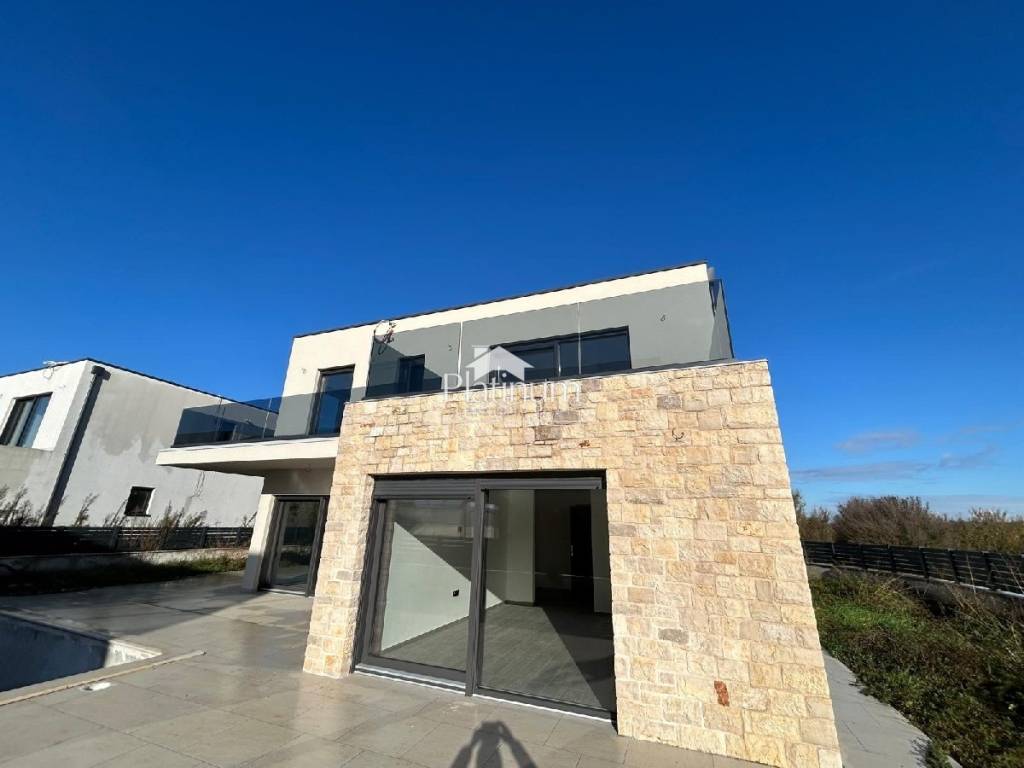 In Tar, near Poreč, this new holiday home with a swimming pool is for sale. The house is in a high degree of completion, and consists of an entrance hall with a toilet (heat pump installed), a large bedroom with its own bathroom and access to the terrace and pool, a kitchen with a dining area and a spacious living room with access to the pool. From the lower part of the house, stairs lead to the first floor, where there are three spacious bedrooms with their own bathrooms, and the main room has a dressing area. All bathrooms have windows and are equipped with sanitary facilities. The upper rooms have access to terraces. According to the concept, the house has a lot of natural light. Top-quality thermal and sound insulation, aluminum joinery, underfloor heating, heated pool, Vaillant air conditioners. Installation of solar panels is possible for an additional fee (preparation installed). Ecological septic tank. Three outdoor parking spaces. Surrounding houses are of similar size, and the buildings are of modern architecture. Quiet part of Tar, 7000m to Poreč. Ideal for family life, but also as an investment for tourist rental. The owner is a legal entity and the price is expressed with VAT, without VAT the price is 625,000. contact 00385951987708