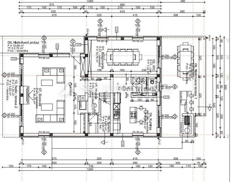 GROUND FLOOR: A beautiful living room with access to the covered terrace and pool, a large dining room and kitchen, a WC, pantry, and bathroom.