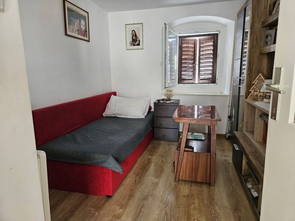 For sale: small house with a terrace and a garden on the edge of the center of Opatija, the oldest tourist destination on the Croatian coast of the Adriatic Sea. The house is two-storey and has 91m2 of interior space, a 12m2 terrace, and a garden of around 80m2. The lower floor, which requires renovation, consists of a tavern and two rooms, while the upper floor features a one-bedroom apartment of 62m2 with a living room, bedroom, hallway, bathroom, kitchen, and terrace. The entrances to the lower and upper floors are separate. The garden includes cascading gardens and a paved terrace.