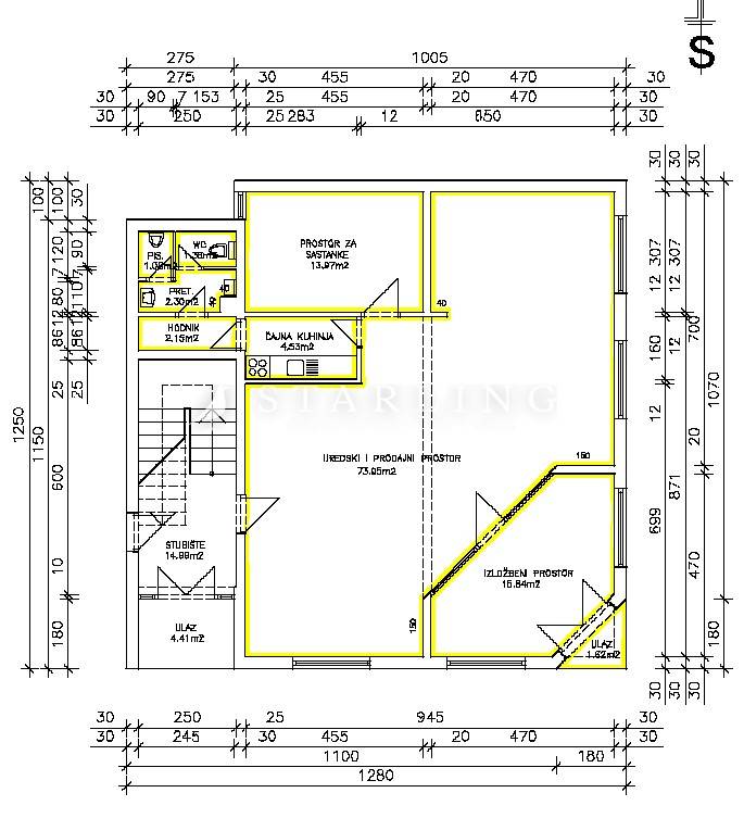 Sastoji se od prostranog open-space prostora, zasebnog ureda, ulaznog hodnika, kuhinje, i WC-a.
