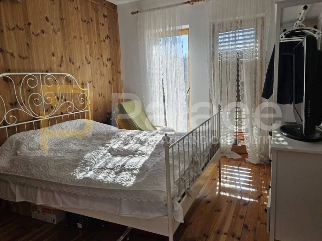 The house covers 146 m² and provides everything needed for a comfortable stay. It consists of four rooms, a spacious living room, two kitchens, and two bathrooms, providing greater privacy and comfort for all guests. In addition to the covered terrace, there is an open terrace for outdoor enjoyment with views of the greenery. Storage space includes a pantry and cellar. Heating can be done with two wood stoves, and there is a fireplace in the living room.