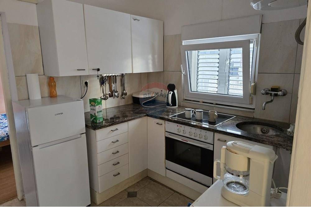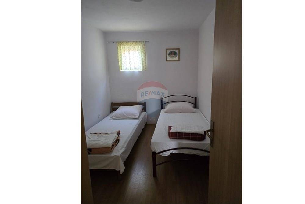 The house has a ground floor, first and second floor, a total of 400 m2 of living space and 5 residential units. The ground floor contains one apartment with three bedrooms, a living room with a kitchen and dining room and a bathroom. The second apartment on the ground floor has two bedrooms, a living room with a dining room and a kitchen, a bathroom and a spacious terrace with a sea view from which it is possible to access the front yard and the basement area that serves as a storage room.