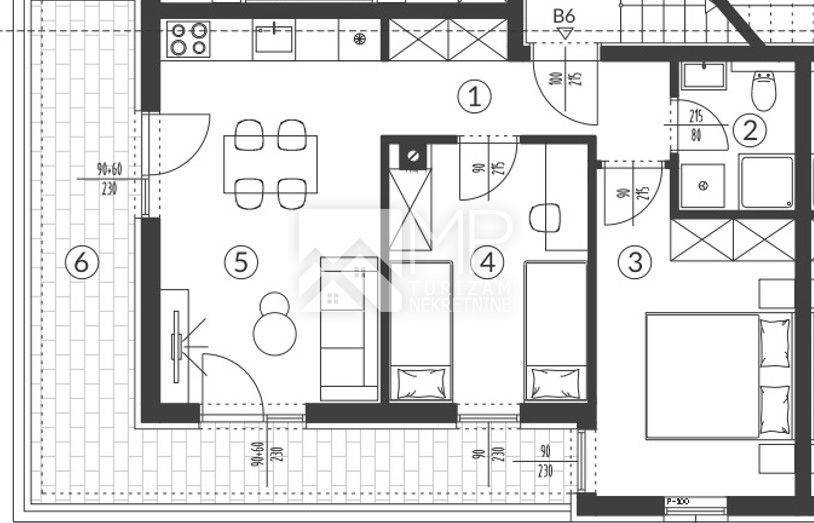 For sale is a functionally arranged two-bedroom apartment in a new building (designation: B6), with a total net area of ​​54.84 m², with an associated parking space PM3 (3.12 m²), which makes a total calculation area of ​​57.96 m².
