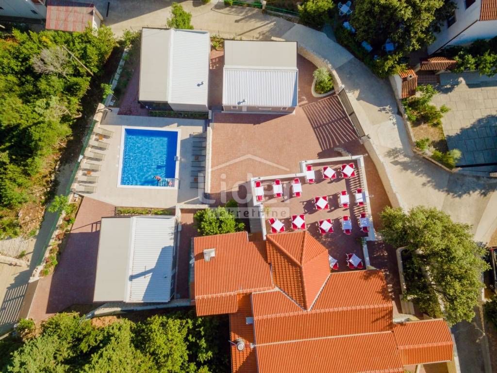 On the island of Rab, in Suha Punta, which is also known as one of the most beautiful parts of Rab, a house with many facilities intended for tourism is for sale. The house is located almost by the sea and is therefore a favorite destination for numerous tourists who have found their oasis of peace here surrounded by pine forests and the scent of the sea. The house has 6 two-bedroom apartments, 8 double rooms, a restaurant, three modern modular houses next to a large swimming pool. All of this is located in the beautiful surroundings of a carefully tended garden that abounds in indigenous Rab plants. There are plenty of parking spaces next to the house. There are also several tennis courts nearby, which are part of the offer of the nearby luxury resorts of the Valamar tourist house. The beach is located about 100 m below the house.
