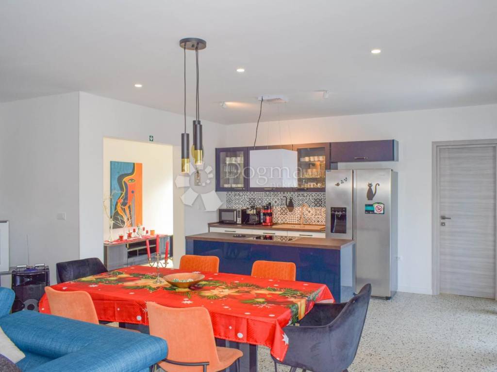 Situated in an exceptionally attractive location in Buzet, with an open view of the old town, this modern and functional single-storey house offers 150 m of living space and a spacious 1,225 m garden. The house features a contemporary design, comfort, and a carefully planned layout, making it ideal for both living and vacation.