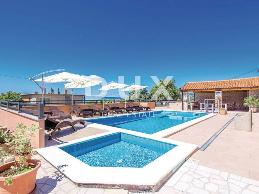 APARTMENT 3 BEDROOMS WITH POOL, NOVI VINODOLSKI An apartment of 120 m2 is for sale, which consists of a hallway, three bedrooms, a living room, a kitchen, two storage rooms and a large terrace with a view of the sea. The apartment also includes an auxiliary space with a boiler room and a storage room on the ground floor of the building. In the front part of the garden there is a swimming pool with a sunbathing area. Part of the garden is a space for socializing for all tenants. The tenants maintain the common space from the reserve. The property is located in a quiet neighborhood and is suitable for vacation, as well as permanent residence or as an investment for tourism. Close to the city center.