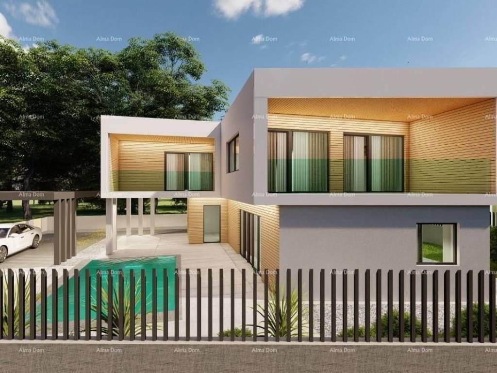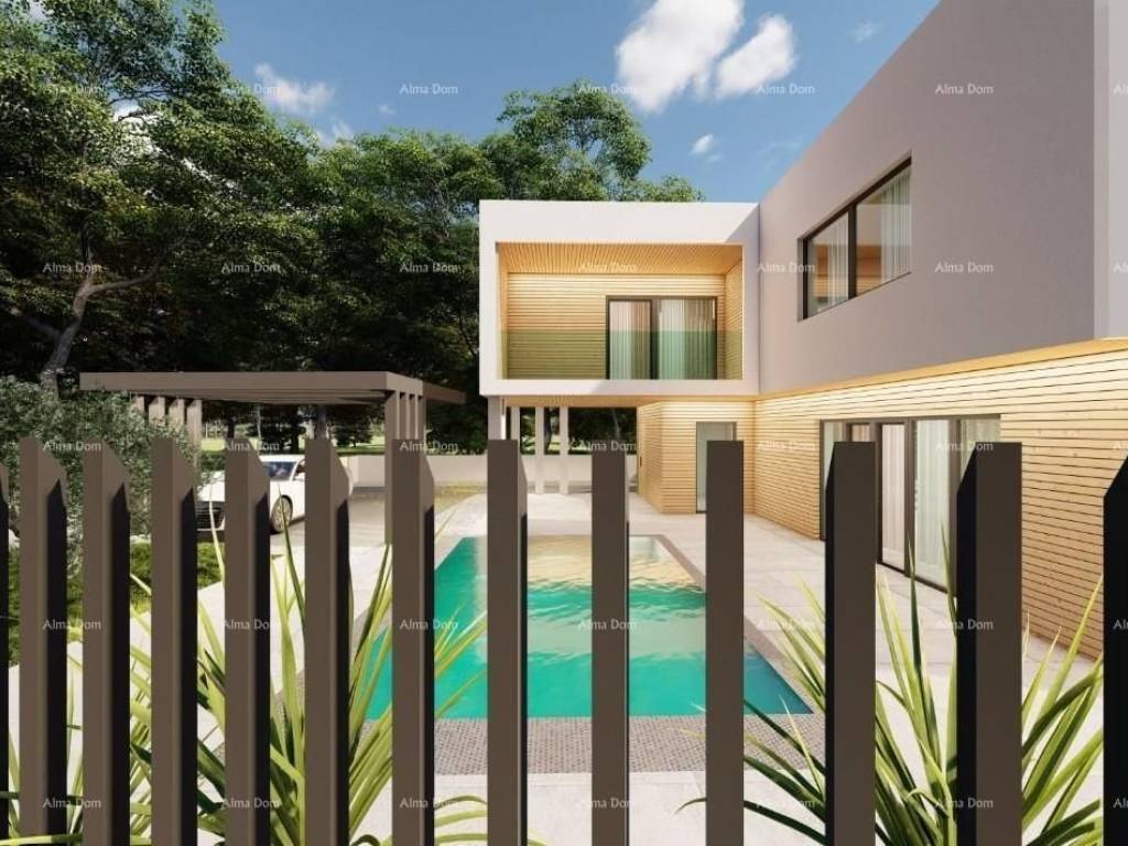 A house under construction, with a view of the sea in Pomer, is for sale. The surface of the house is 190 m2, it consists of 2 floors (ground floor + floor).The house consists on the ground floor (area 88.99 m2, net 75.01 m2) of: entrance area, living room, kitchen, dining room, toilet, storage room and covered terrace.The first floor (area 100.86 m2, net 95.03 m2) consists of: hallway, 3 bedrooms, 2 bathrooms and 2 loggias.Swimming pool with an area of ​​27 m2.Electricity, water and sewage connections are provided.The distance from the sea is 100 m, from the marina 700 m, from the public beach 1 km.Note: There is also the option to purchase the land with a project, including all infrastructure connections (electricity, water, and sewage) and municipal contributions.For further information, please contact:Azra+385 91 611 5706+385 98 420 885azra@almadominvest.com