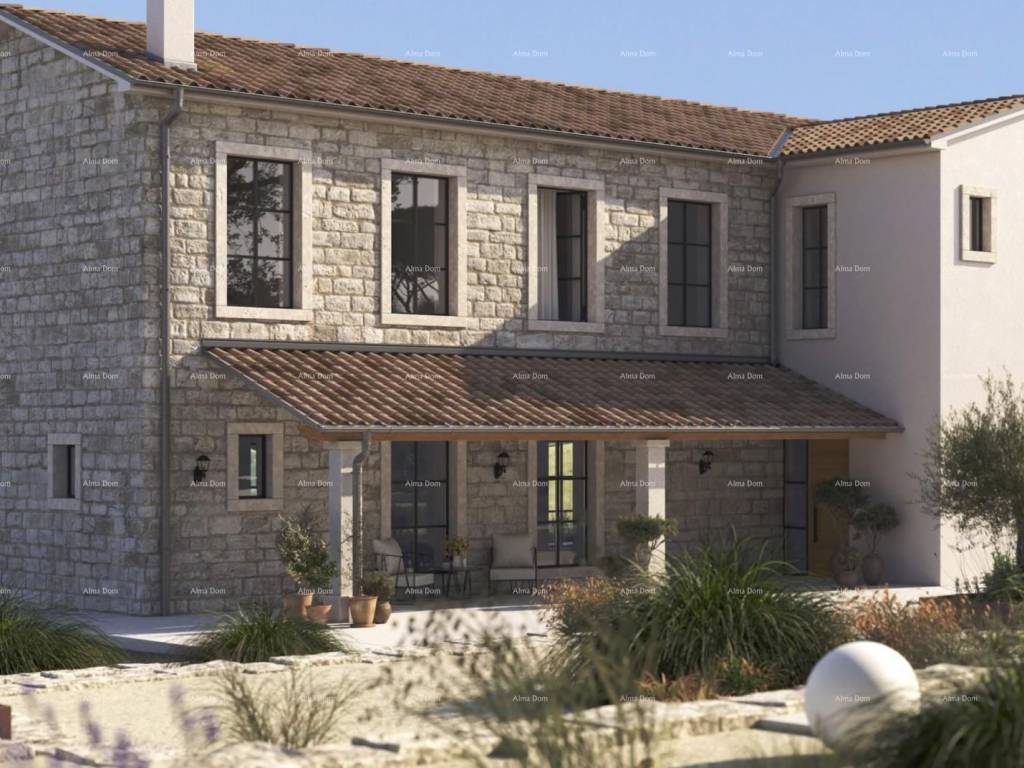 For sale is a beautiful stone house in an exceptionally peaceful and picturesque location, at the entrance to a small Istrian village near Cerovlje, in the heart of unspoiled nature. In close proximity, there are a shop, post office, and restaurant, ensuring a perfect balance between privacy and convenience.The house is currently in the renovation phase. The total living area is 200 m², situated on a plot of 1,390 m² that includes additional amenities such as a pool, terrace, summer kitchen, and garage.This elegant property offers spectacular panoramic views of the surrounding hills, Istrian nature, and on clear days, the island of Cres and the sea.The house spans two floors:On the ground floor, there is a spacious open-plan area that connects the kitchen and living room, ideal for family gatherings. There is also a guest toilet, a utility room, and an internal staircase leading to the first floor.The first floor features three luxurious bedrooms, each with its own bathroom, while one room includes a large bathtub for complete relaxation. From the hallway with a large glass wall, there is a beautiful view of the surrounding nature, and there is also access to a balcony where you can enjoy sunsets.The house is designed according to modern standards of comfort and sustainability – it is equipped with underfloor heating powered by a heat pump, air conditioning for cooling, and solar panels on the roof for energy efficiency. The property includes a garage with two parking spaces and additional space for bicycles or a boat, as well as two outdoor parking spaces for guests.The buyer is offered the option to take over the house at various stages of renovation, with a “turnkey” option upon completion of the work. The planned completion of construction is expected by the end of 2026.This unique stone house is perfect for those seeking peace, authenticity, and a blend of traditional Istrian charm with modern comfort – ideal as a family retreat, holiday home, or investment for luxury tourism.For more information, please contact:Azra+385 91 611 5706+385 98 420 885azra@almadominvest.com