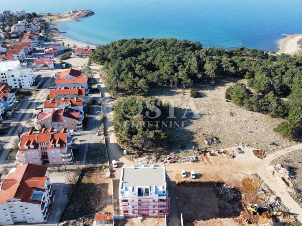 An apartment with a garden under construction is for sale in Povljana on the island of Pag. The apartment, measuring 49.95 m2, is located on the ground floor of a residential building with 12 units and an elevator. It consists of a living room, kitchen and dining room, bedroom, bathroom and hallway, and a terrace. The apartment also has a garden measuring 32.06 m2, and an outdoor parking space. There is an option to purchase a garage for an additional fee.