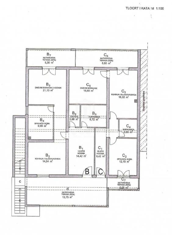 The apartment is located on the first floor of a small residential building and offers approximately 75 m2 of total area (registered as apartment B, 75 m2, including a covered terrace calculated at 50%). It consists of a generous entrance hall connecting all rooms, a kitchen with dining area, living room, one bedroom, bathroom and storage. From the living room there is access to a pleasant covered terrace, perfect for summer evenings. Thanks to the layout and existing installations, the apartment has the potential to be converted into up to three smaller residential or holiday units with additional investment, making it very attractive for rental investors.