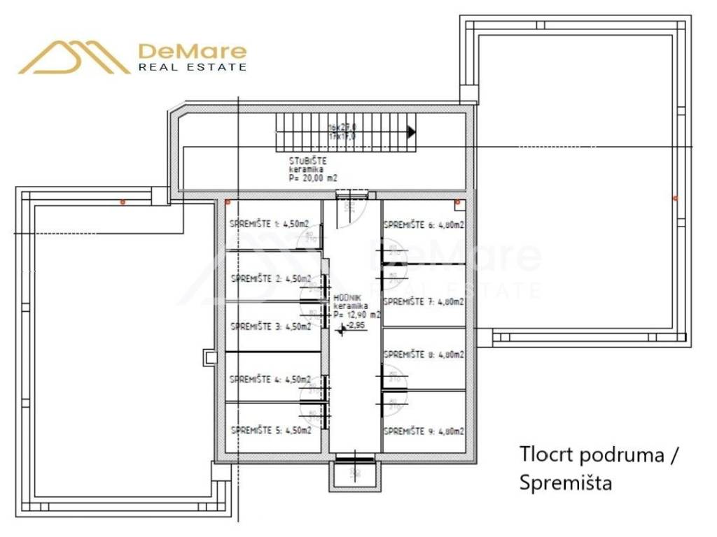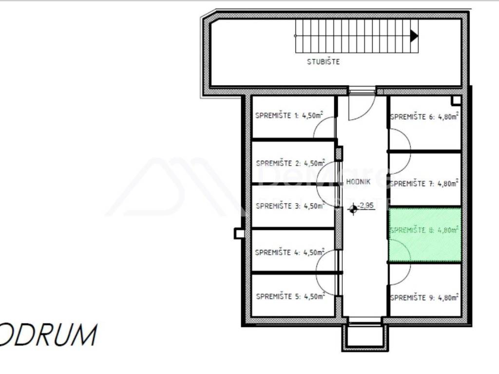 The building has 4 floors / basement, ground floor, first and second floor, with a total of 9 residential units. There are storage rooms in the underground floor, and parking spaces are located in a landscaped parking lot in the building's yard. Each apartment has 1 parking space.