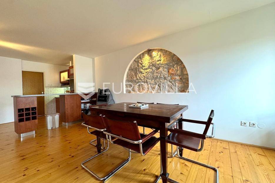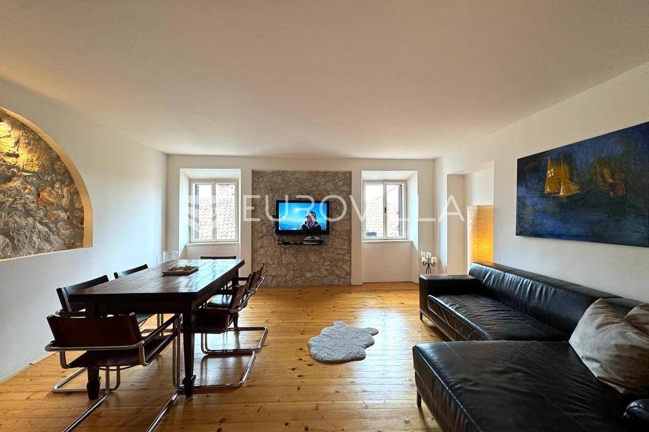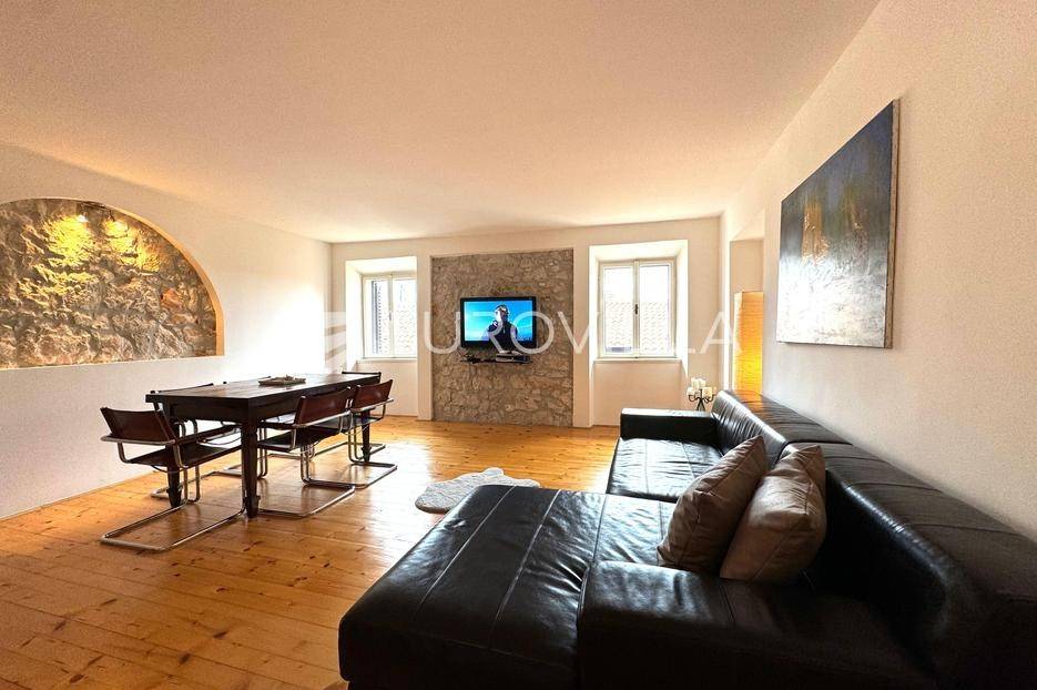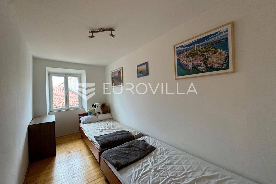 Predstavljamo lijepo uređeni stan za dugoročni najam smješten u strogome centru grada Rovinja, NKP 80 m2. U ovom povijesnom i romantičnom gradu stan se smjestio na drugom katu i sastoji se od ulaznog hodnika koji vodi prema prostoru otvorenoga koncepta gdje se nalazi prostrani dnevni boravak s kuhinjom s blagovaonom. Cijeli je prostor osunčan dnevnim svijetlom tijekom cijeloga dana, uz pomoć obnovljene stolarije i dobre orijentacije. Ostatak stana čine dvije spavaće sobe, ostava i kupaonica.Stanu pripada korištenje zajedničkog dvorišta zgrade s prekrasnim starim bunarom kao i krovna terasa s koje se pruža pogled na more.Za sva dodatna pitanja, potrebne informacije ili želju za organizacijom termina razgleda stana slobodno nas kontaktirajte!