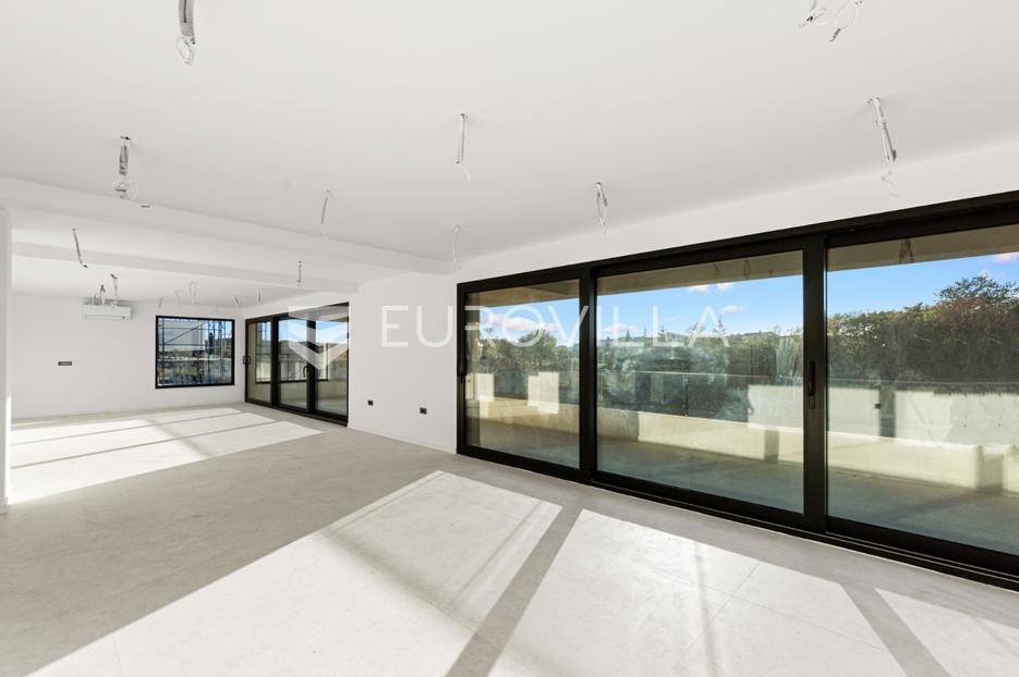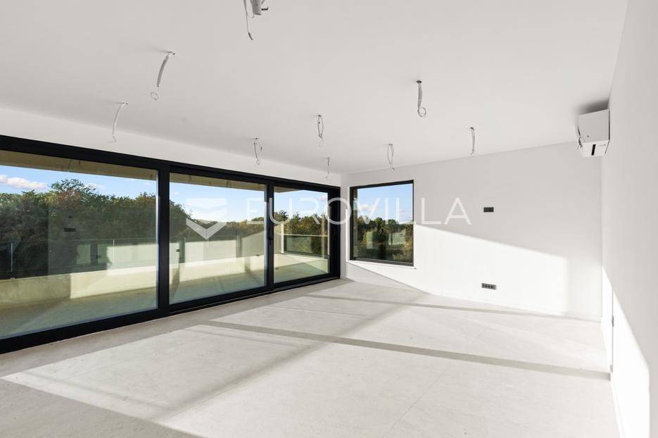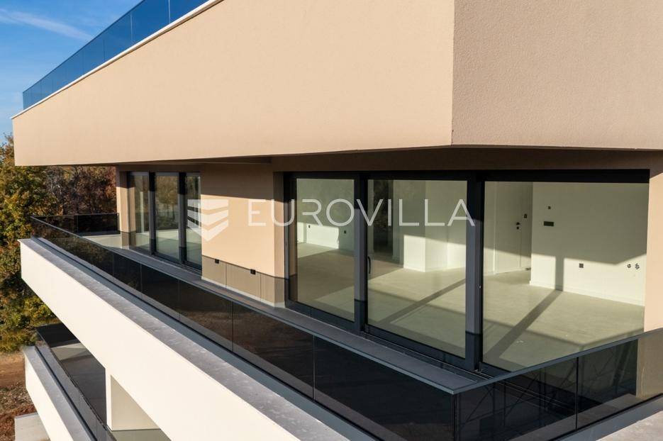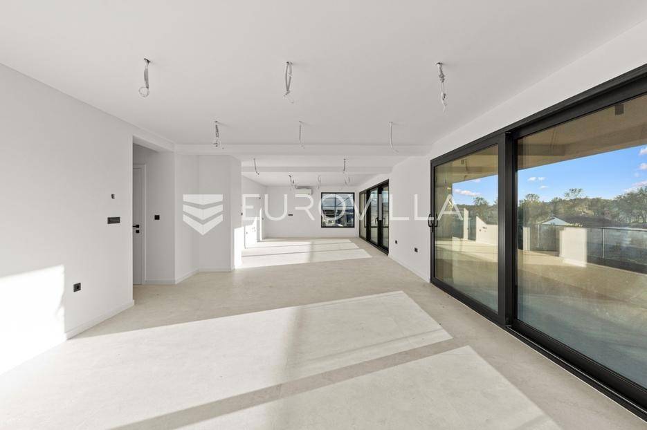 Stan ukupne površine 154m2, a se sastoji od ulaznog hodnika, open space dnevnog boravka, kuhinje s blagovaonom, četiri prostrane spavaće sobe, dvije kupaone, gostinjskog toaleta, prostorije za tehniku i praone. Iz dnevnog boravka izlazi se na natkrivenu terasu s koje se pruža predivan panoramski pogled. Stanu također pripadaju i četiri parkirna mjesta.Podno grijanje na dizalicu topline je provedeno u cijelom stanu, a hlađenje putem klima uređaja. Aluminijska stolarija, troslojno staklo, električni podizači roleta i komarnici.