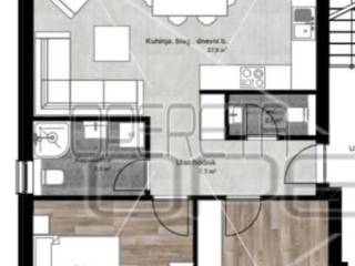This charming apartment is located on the ground floor and will consist of a living room, dining room and kitchen according to the open space concept, two bedrooms, bathroom and toilet. From the living room and from one bedroom there is an exit directly to the terrace. Its total area is 70.97 m2. Heating of the apartment is provided by air conditioning and underfloor heating on electricity. Each apartment will have two parking spaces. The future owner of the apartment will be able to purchase part of the garden. The planned completion of construction is in the summer of 2025