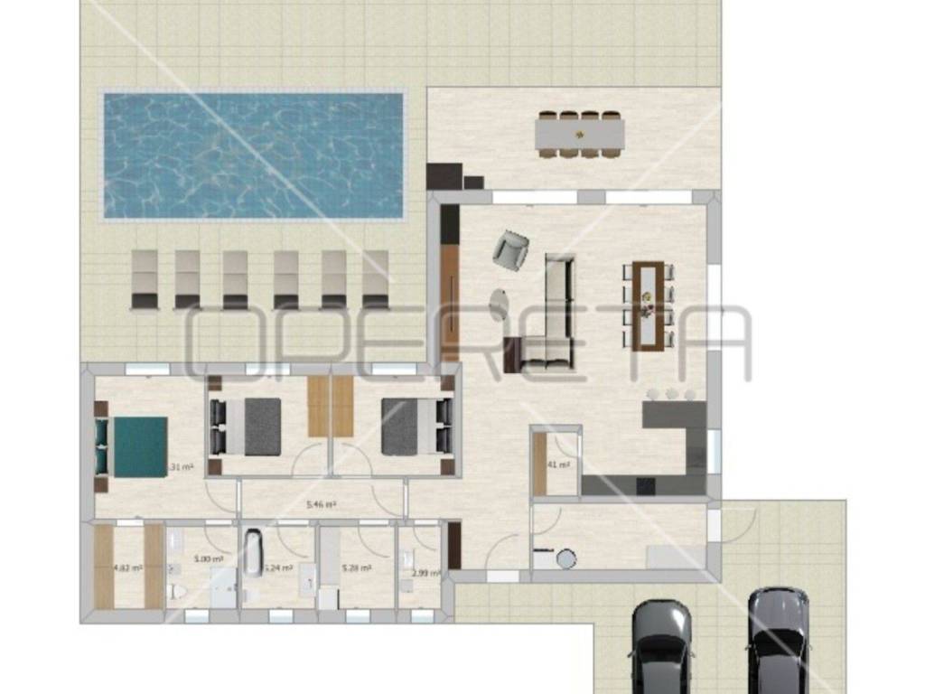 Građevinska dozvola ishodovana je za prizemnicu s bazenom od 252 m2 bruto površine.