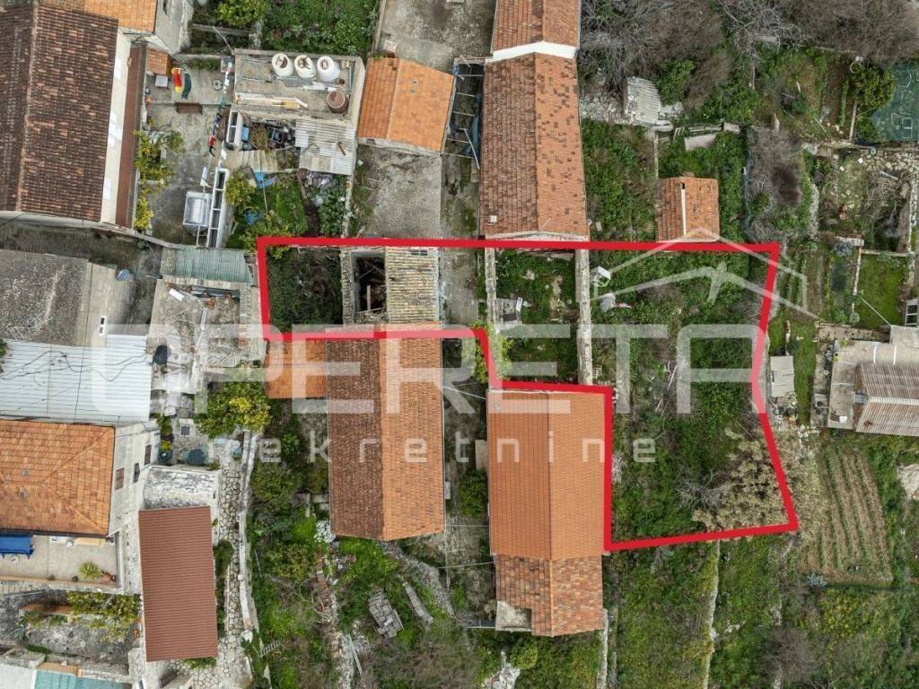 In the peaceful settlement of Smokvica, on the southwestern coast of the island of Korčula, there are two stone houses awaiting complete renovation. One house has an area of approximately 60 m², while the other is 90 m², and the total land area is 434 m². In front of one house, there is a spacious garden with a view of the Smokvica vineyards and olive groves, ideal for relaxation or building a pool.