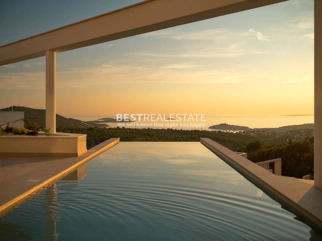 Prodaje se ekskluzivna, dizajnerski uređena vila smještena na mirnoj lokaciji, s apsolutno dominantnim pogledom na more i stari dio Primoštena iz svake pozicije na imanju. Vila se prostire na cca 500 m² stambene površine te se nalazi na zemljištu od cca 1100 m².
