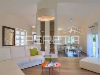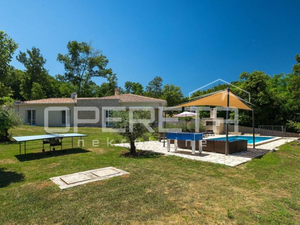 In an idyllic, quiet village near Labin, surrounded by untouched nature and greenery, this beautiful single-storey house with a net area of 171 m² is located, built on a spacious plot of 4,261 m². The house is located on the last edge of the construction area, which ensures complete privacy and a view of nature without neighboring buildings in the immediate vicinity.
