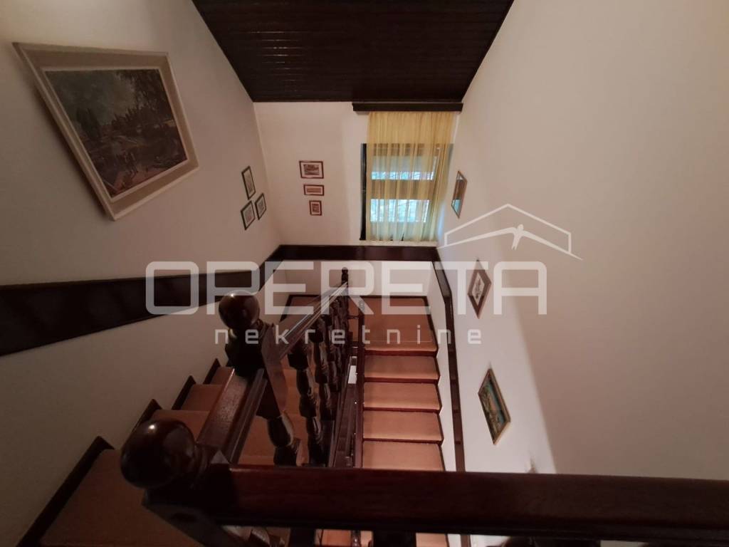 Odlična samostojeća katnica, građena s puno armirano betonskih dijelova preko podruma, ugaonih serklaža do zidova debelih 40 cm. Jako kvalitetna, održavana kuća koja se prostire na 116m2 prizemlja i 103m2 potkrovlja povezanih unutarnjim stepeništem. Ispod kuće je veliki podrum od 65m2 kroz 4 prostorije. Kuća je suha, s provedenom drenažom, topla, s odličnom izolacijom. Iza kuće je dvostruka dupla garaža od 69 m2 za 4 auta ili za radionicu. Prekrasna parcela s vrtom ispred i iza kuće, smještena u mirnoj ulici, a kuća je uvućena od ceste. Sva dokumentacije je uredna i moguće ju je kupiti kreditom. Sva eventualna ulaganja bila bi samo iz kozmetičkih razloga. Prilika!